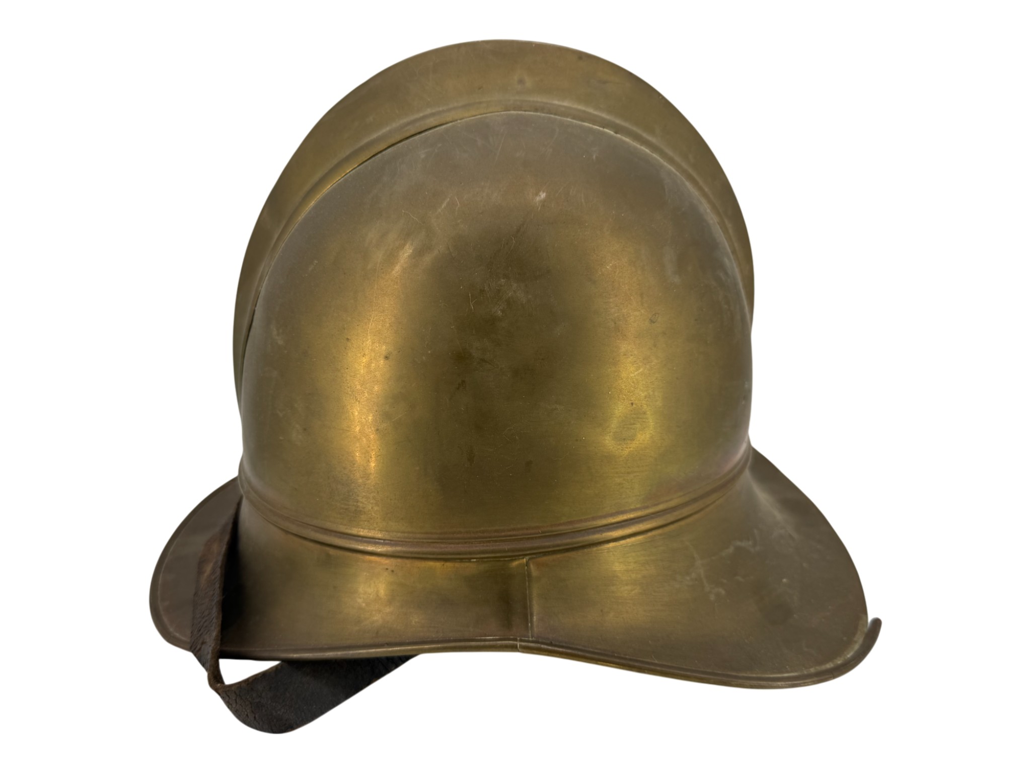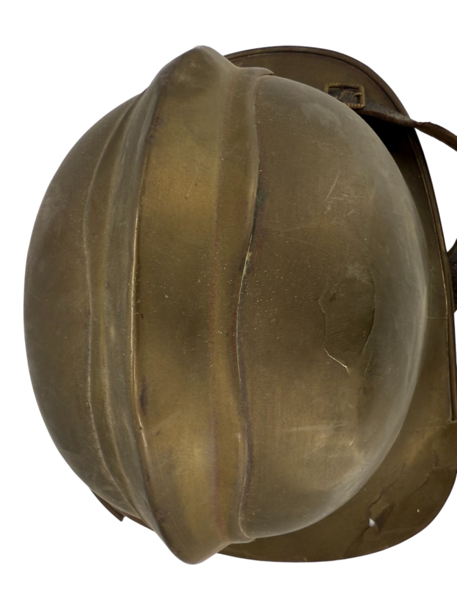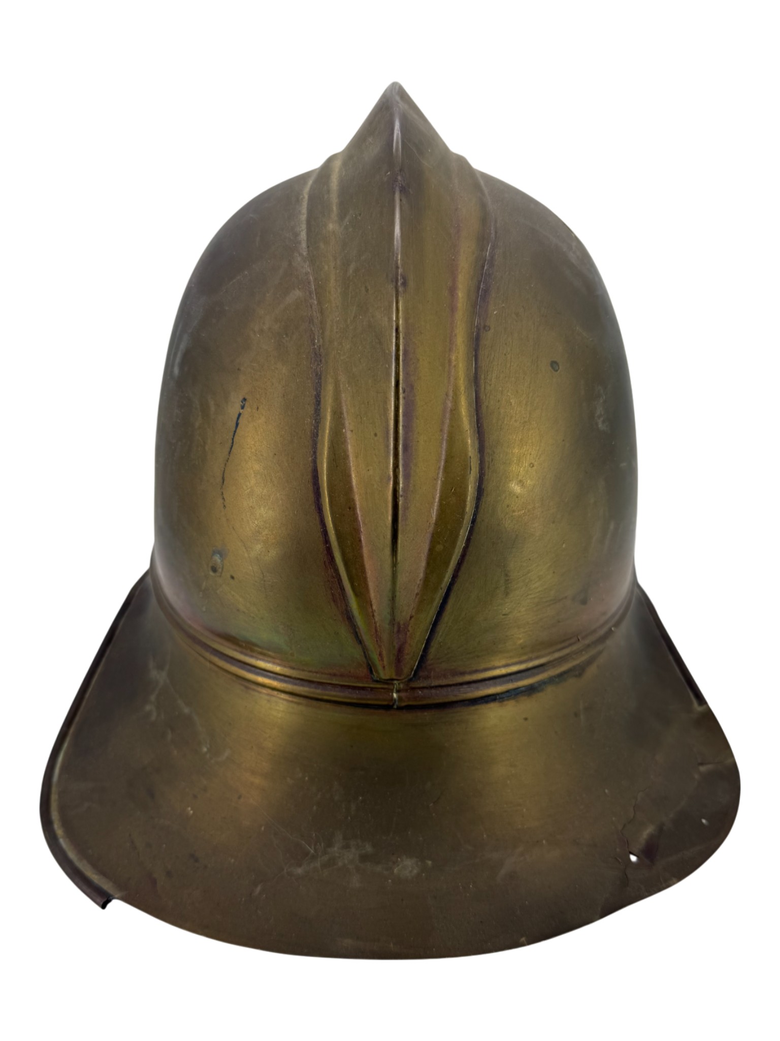 19th Century Brass German Fire Bridage Helmet, damage on the rear edge, generally good condition.