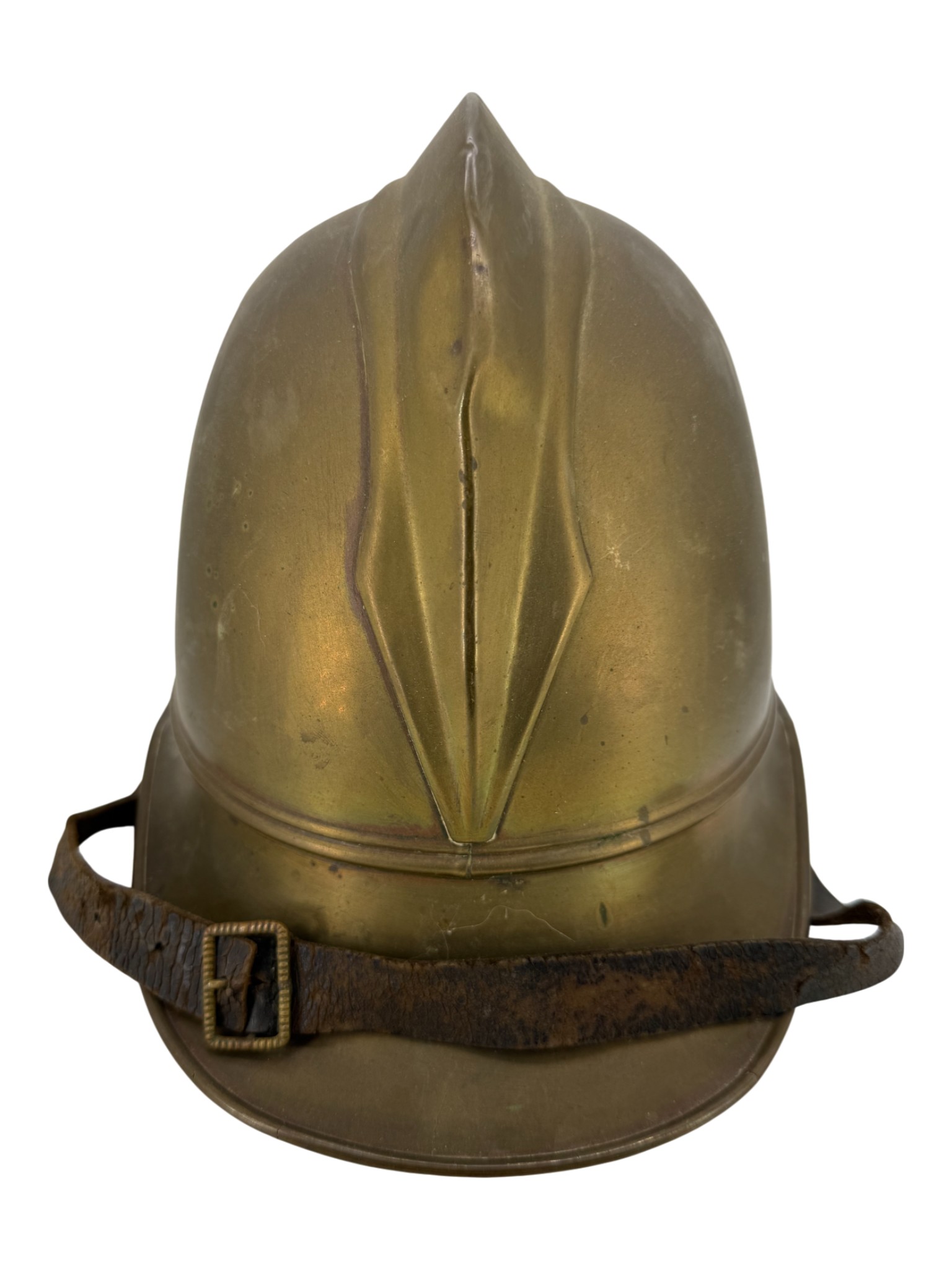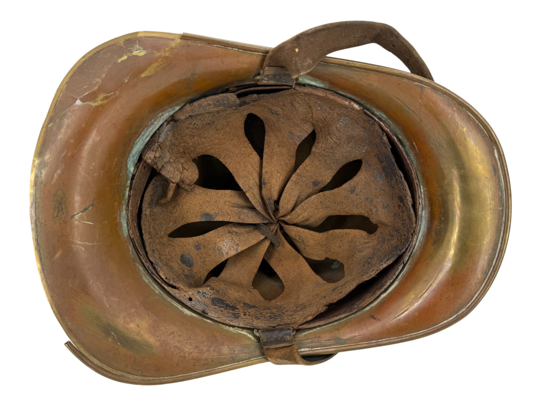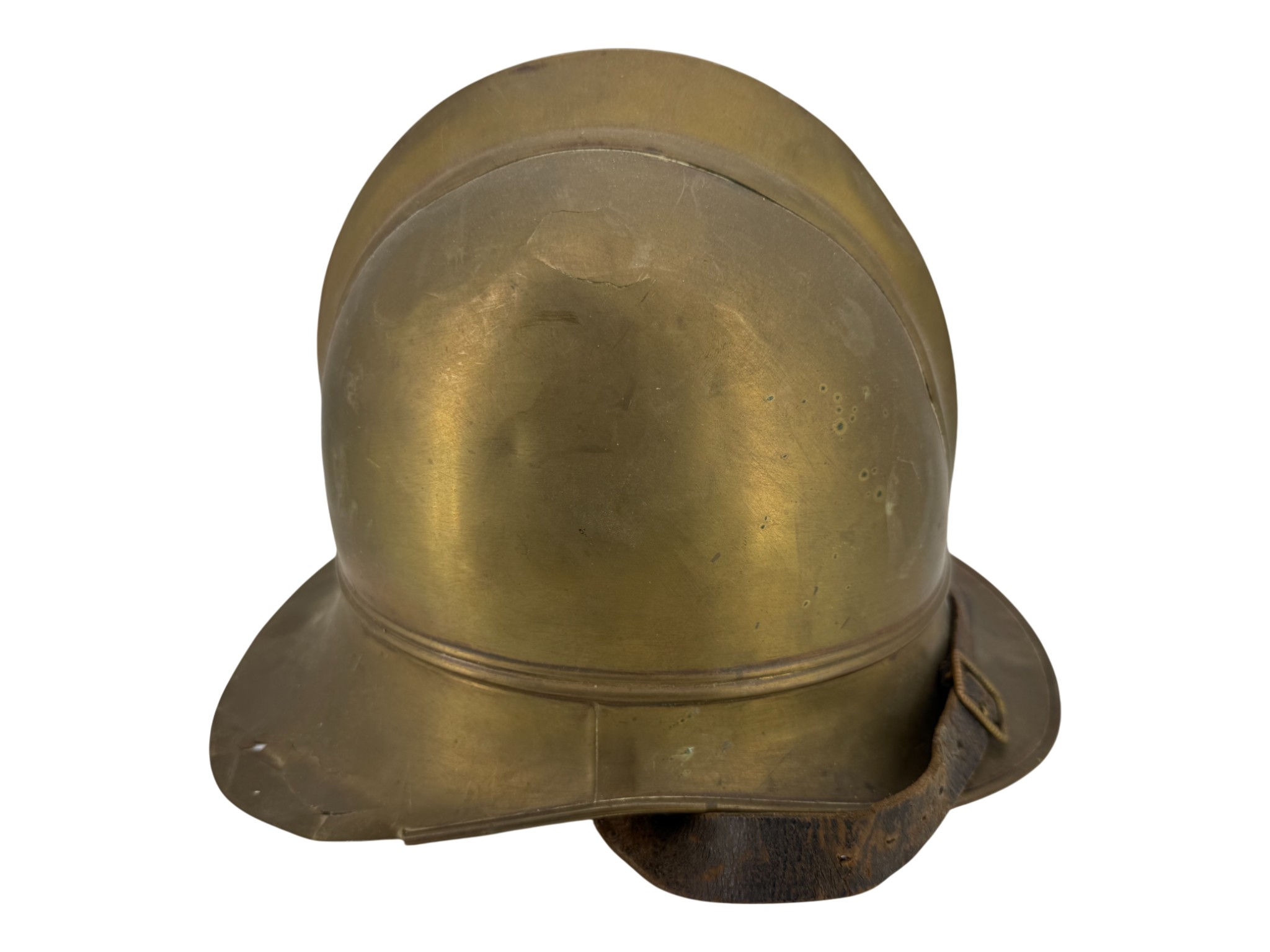 19th Century Brass German Fire Bridage Helmet, damage on the rear edge, generally good condition.