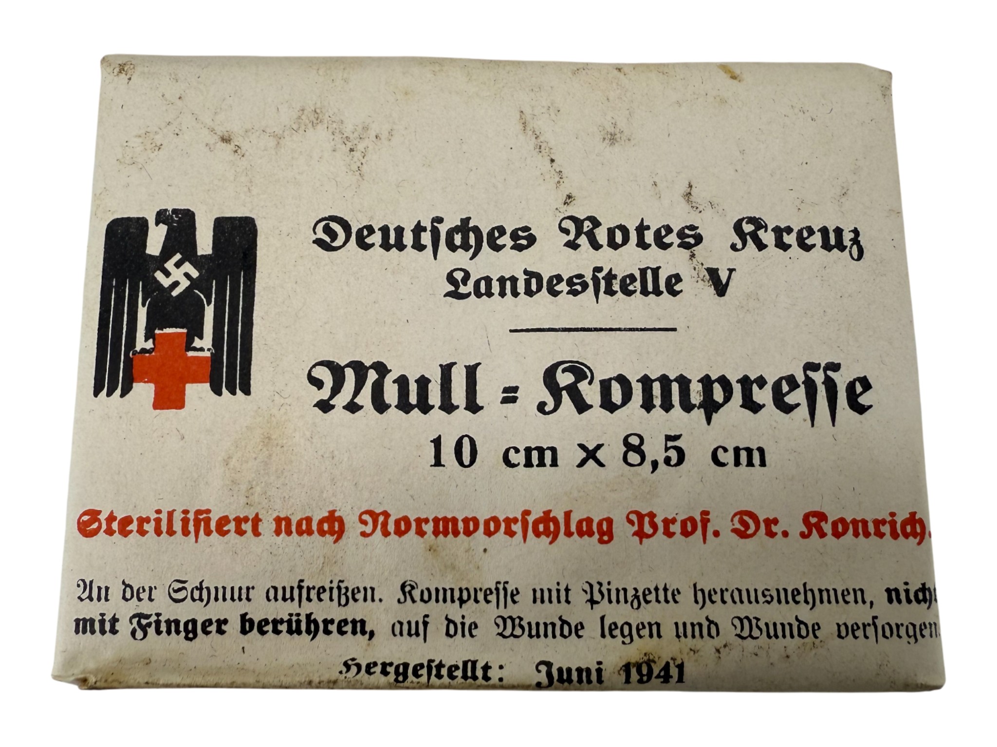 DRK Mull Kompresse 10×8,5m 1941, original, unused.