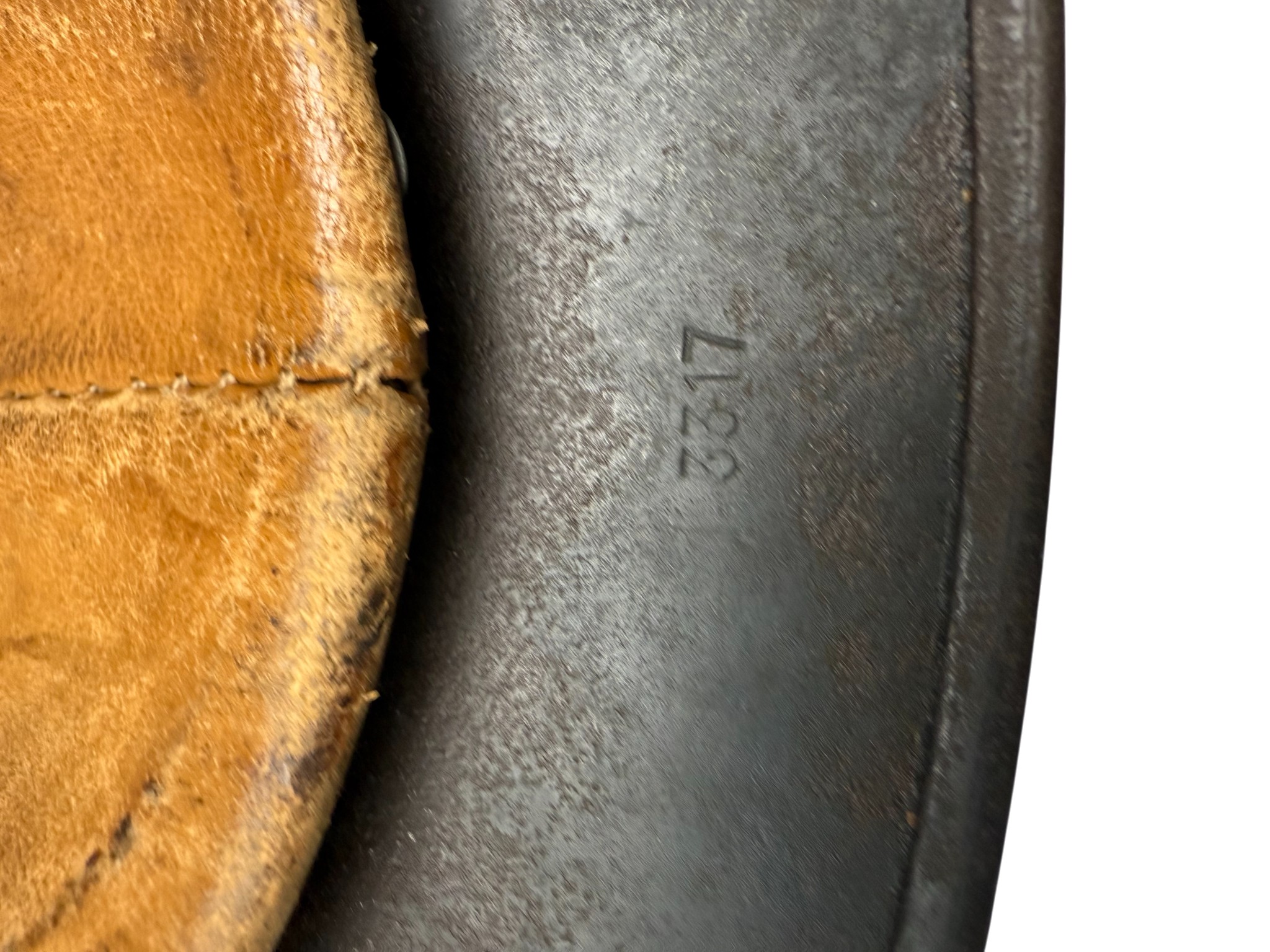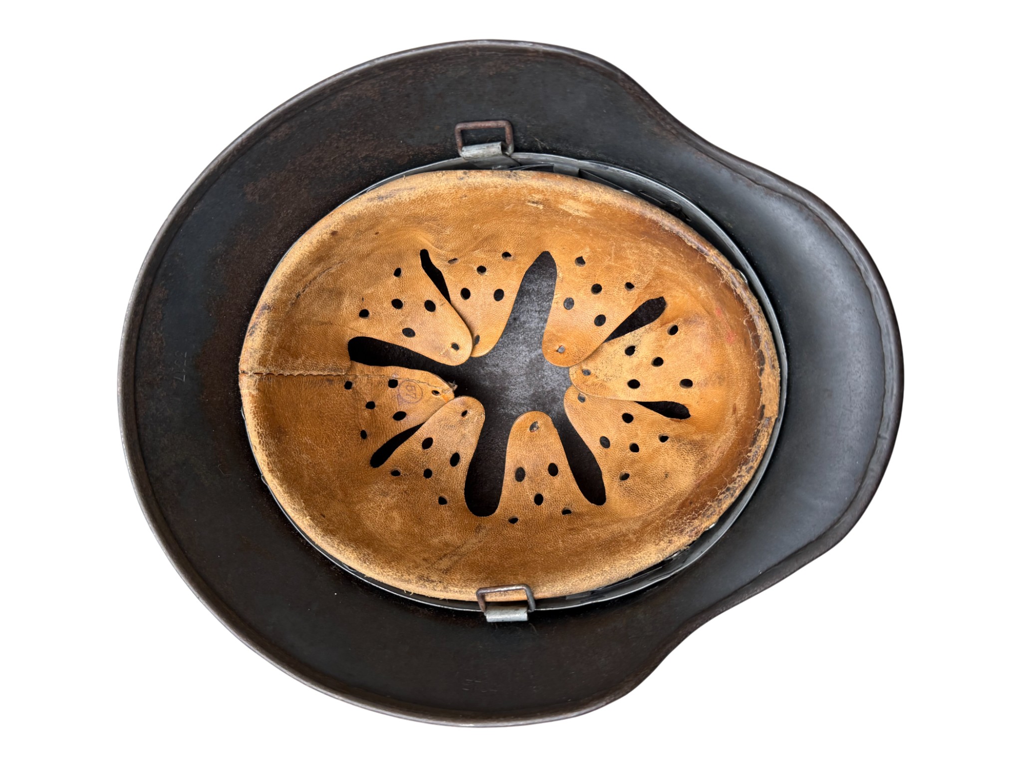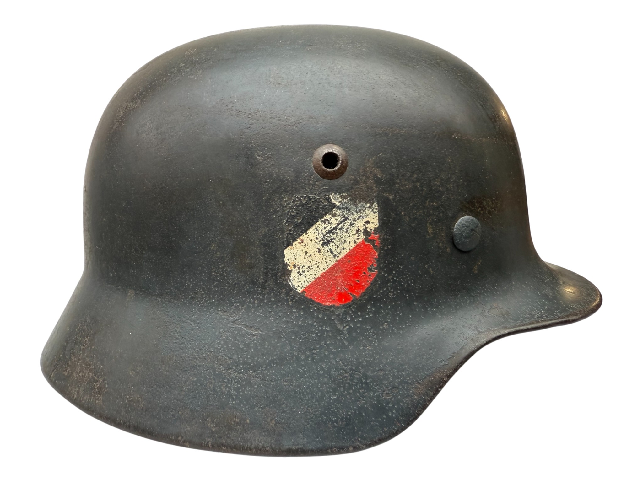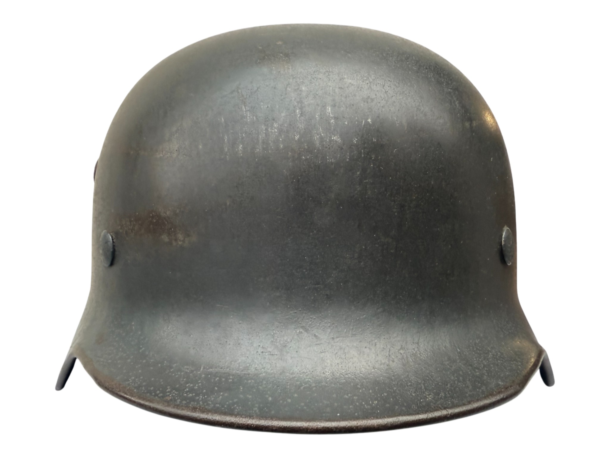 Early m35 DD Luftwaffe helmet. Nice visible decals, dark blue paint. Liner in good condition. Just nice worn early luftwaffe helmet.