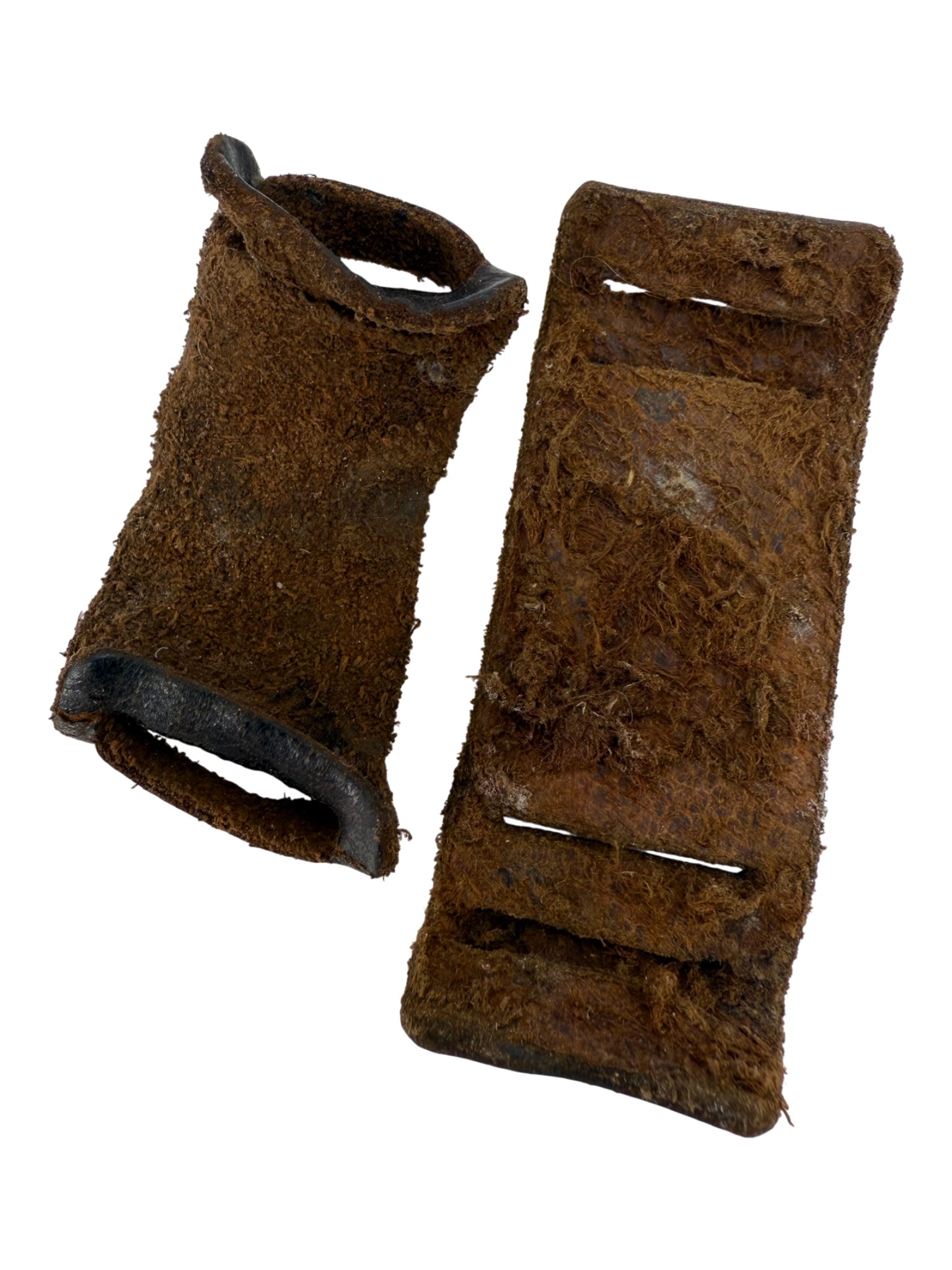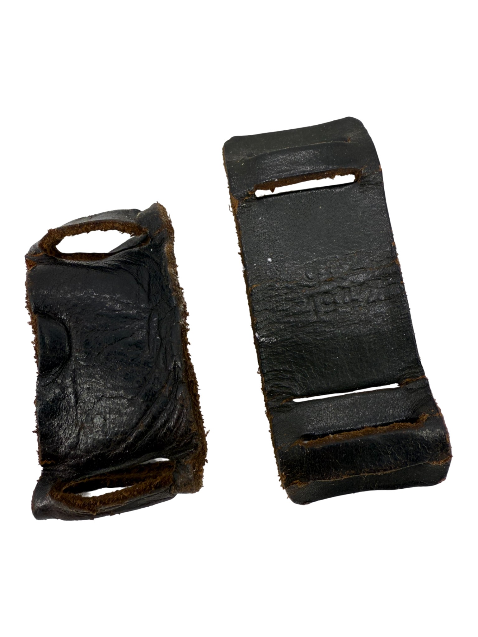 Gasmask can straps leather covers, set in good used condition