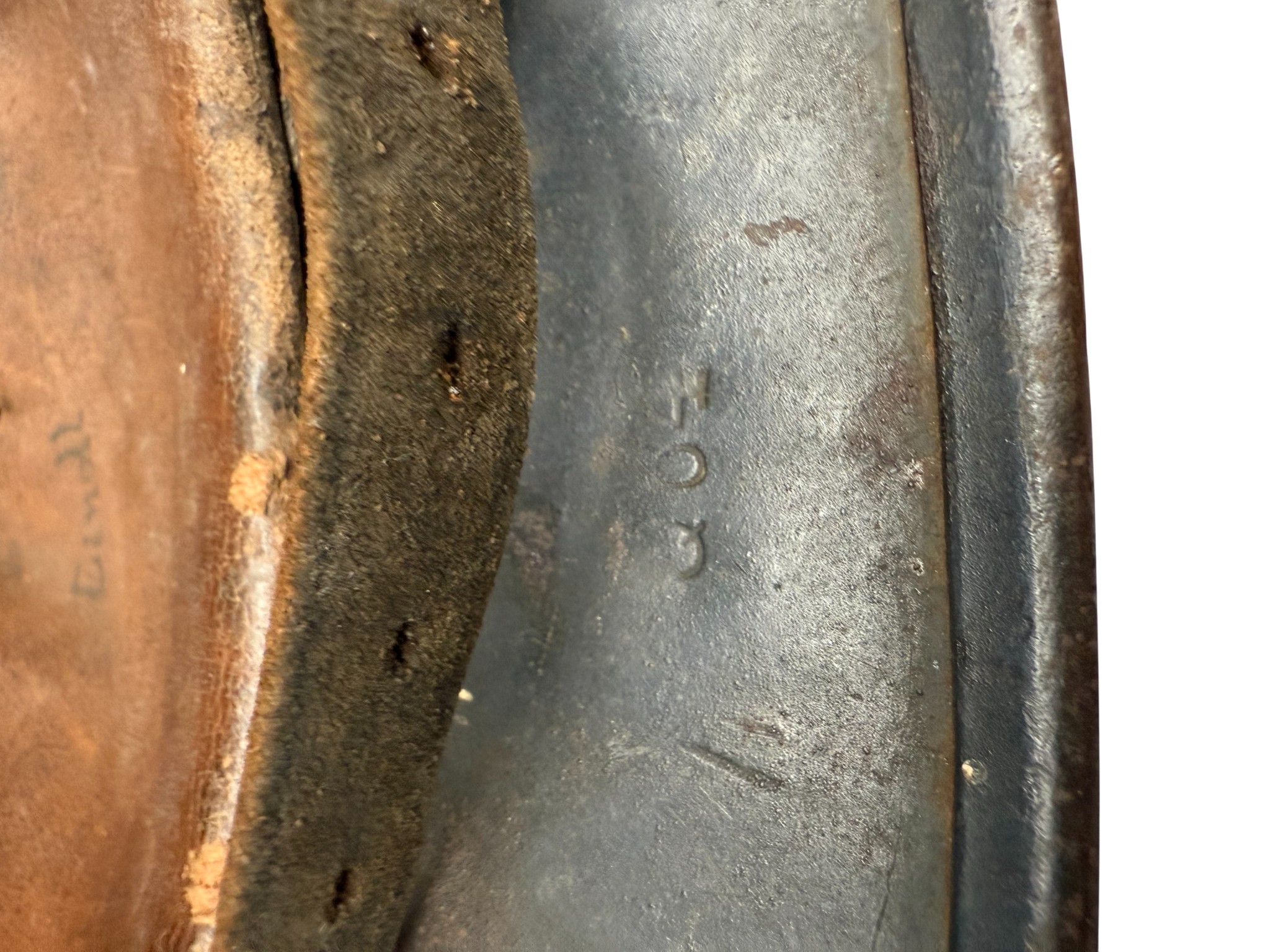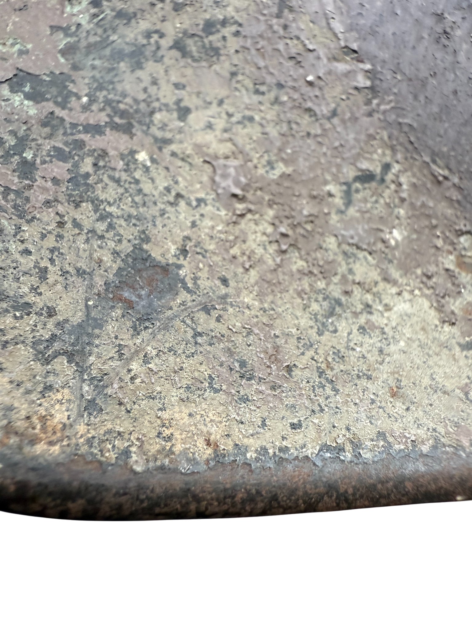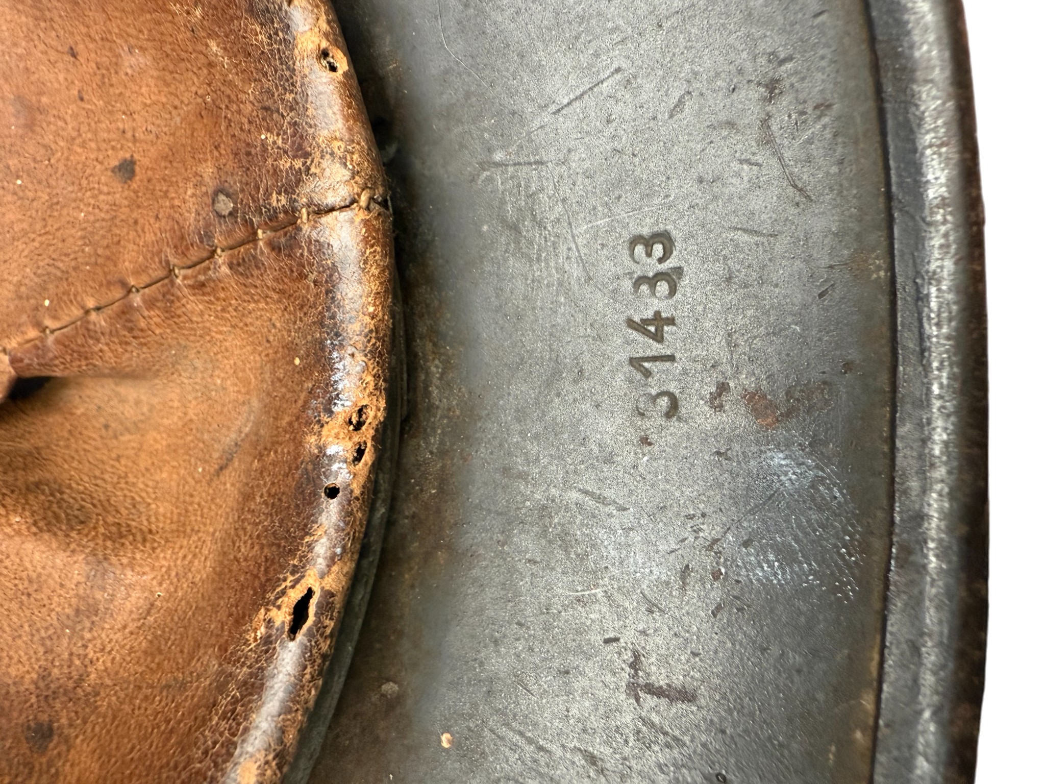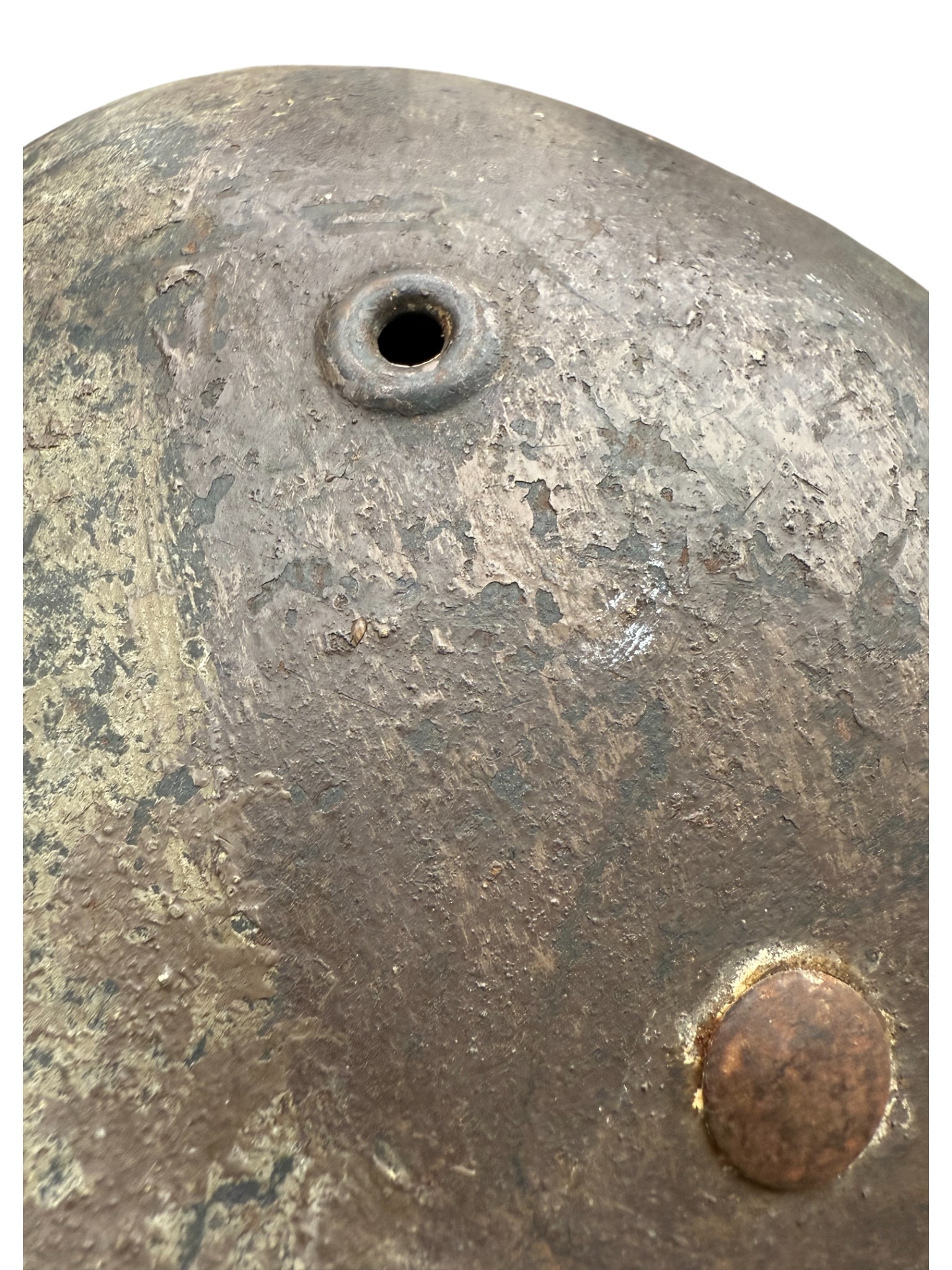 Heer m40 camuflage helmet. Untatched, beautiful camouflage helmet, patina and paint speak for themselves. Camouflage applied with a brush. Named fev times on liner.