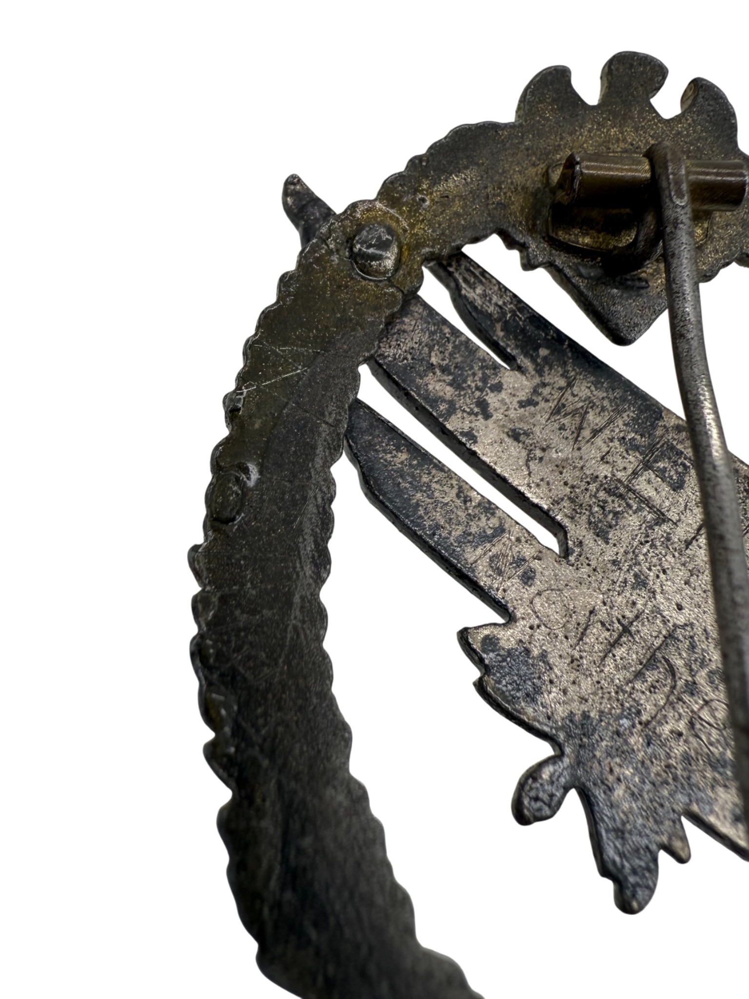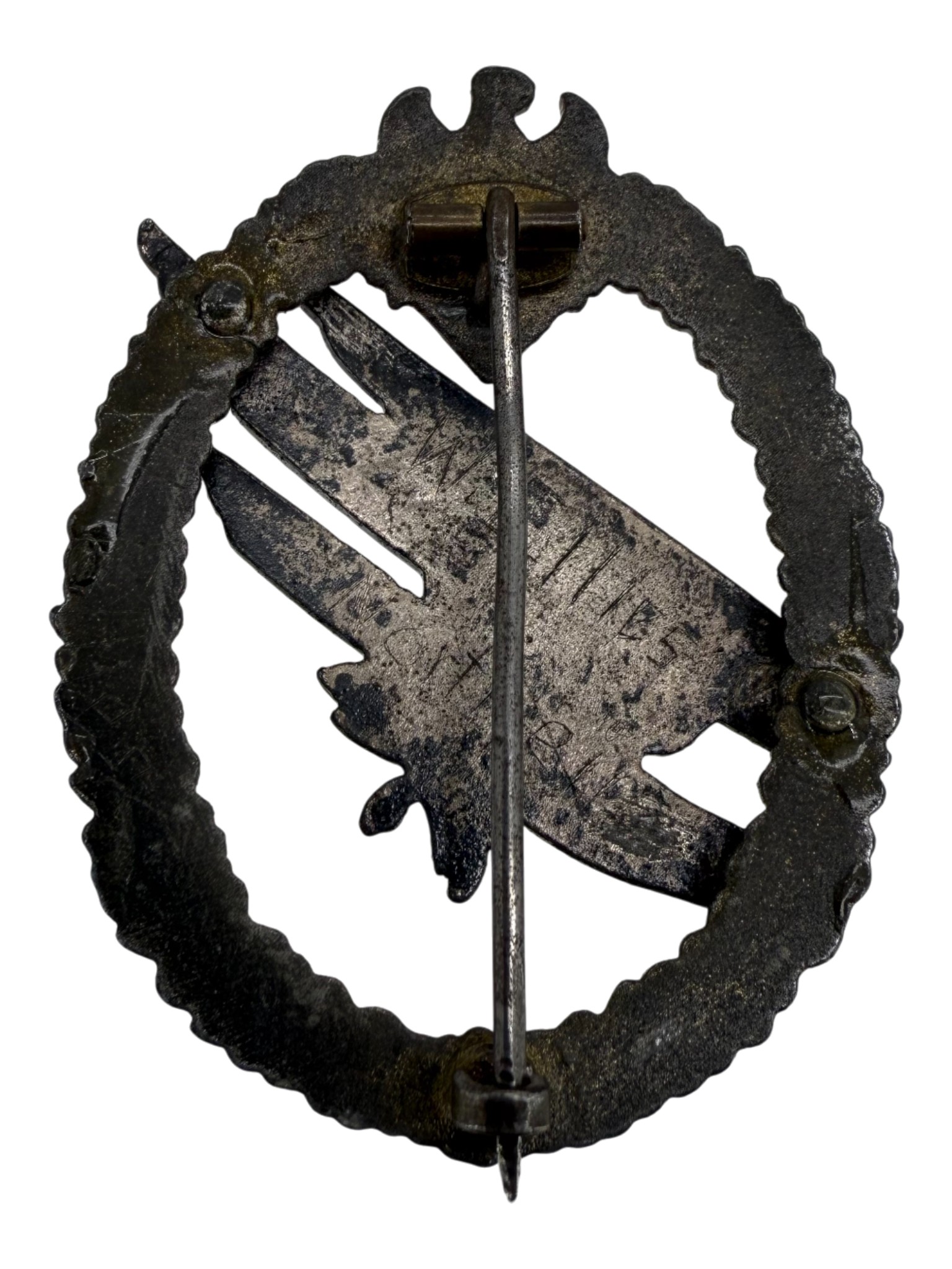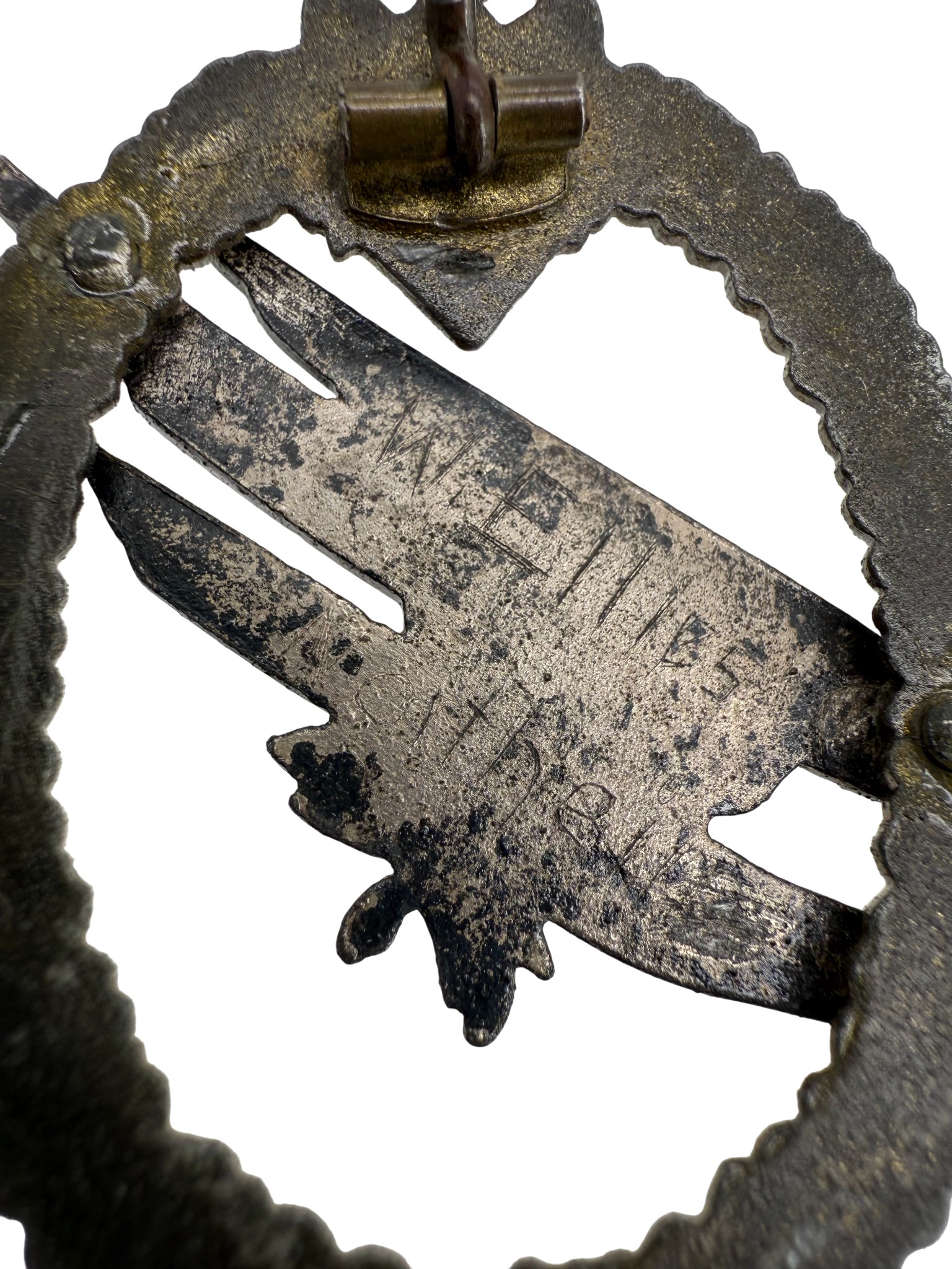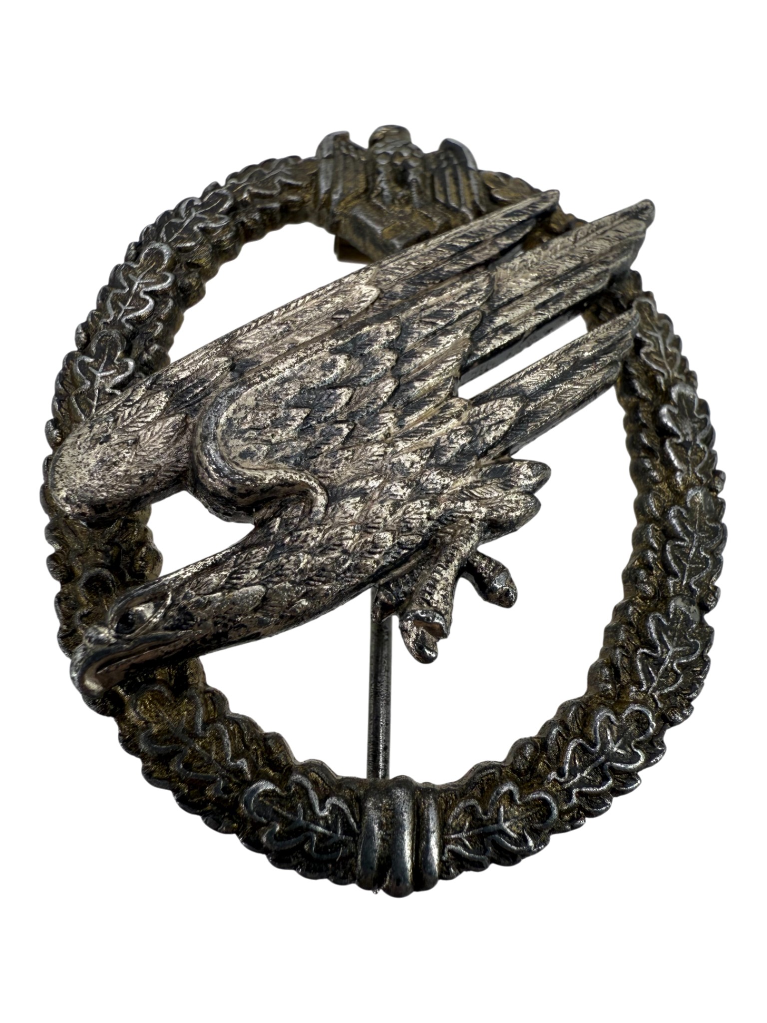 Heer Paratroopers badge, worn condition, Named. visible crack and protected with resin. Typical crack on these badges. 100% originlal rare badge made by FLL