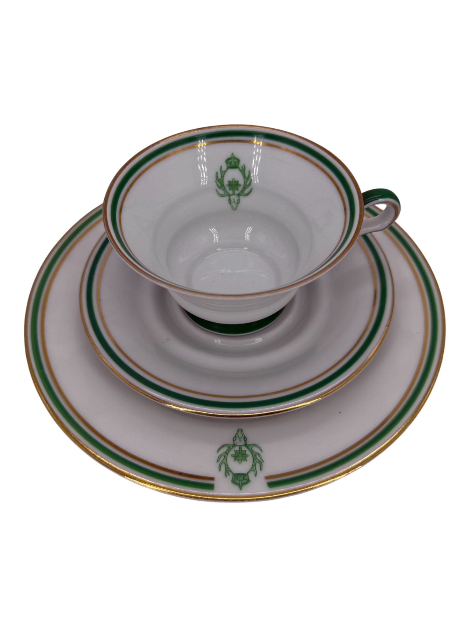 Kaiserliche Deutsche Jägerbund coffee cup with saucers and plate. Rare set in perfect condition. No damages.