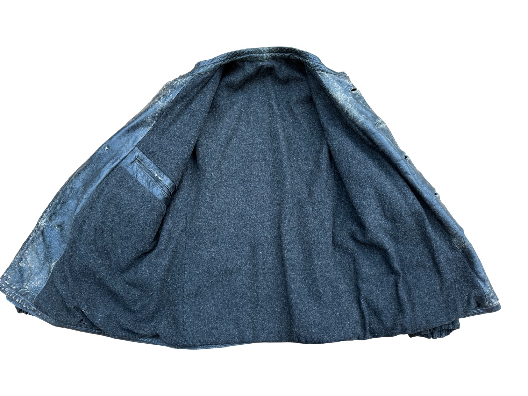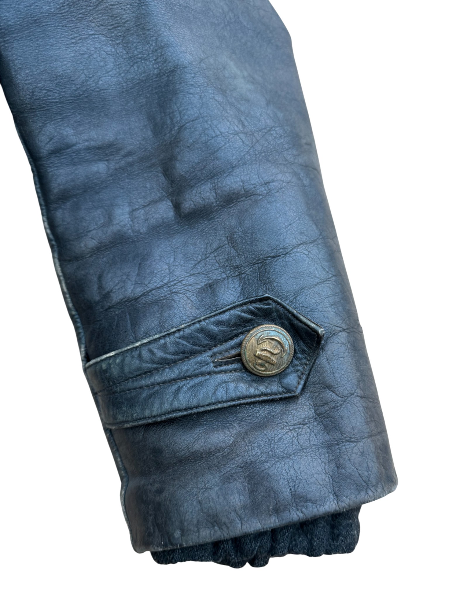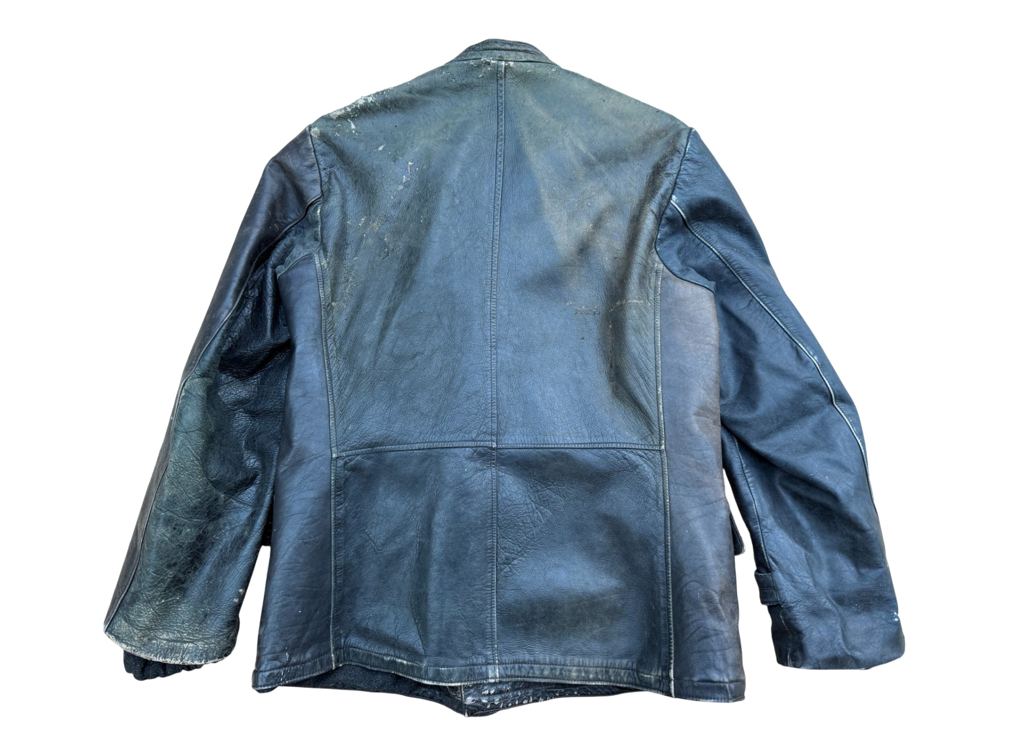 Kriegsmarine Black protective leather jacket “uboot”, good usued condition with original buttons and nice Stamp Eagle and M on leather.