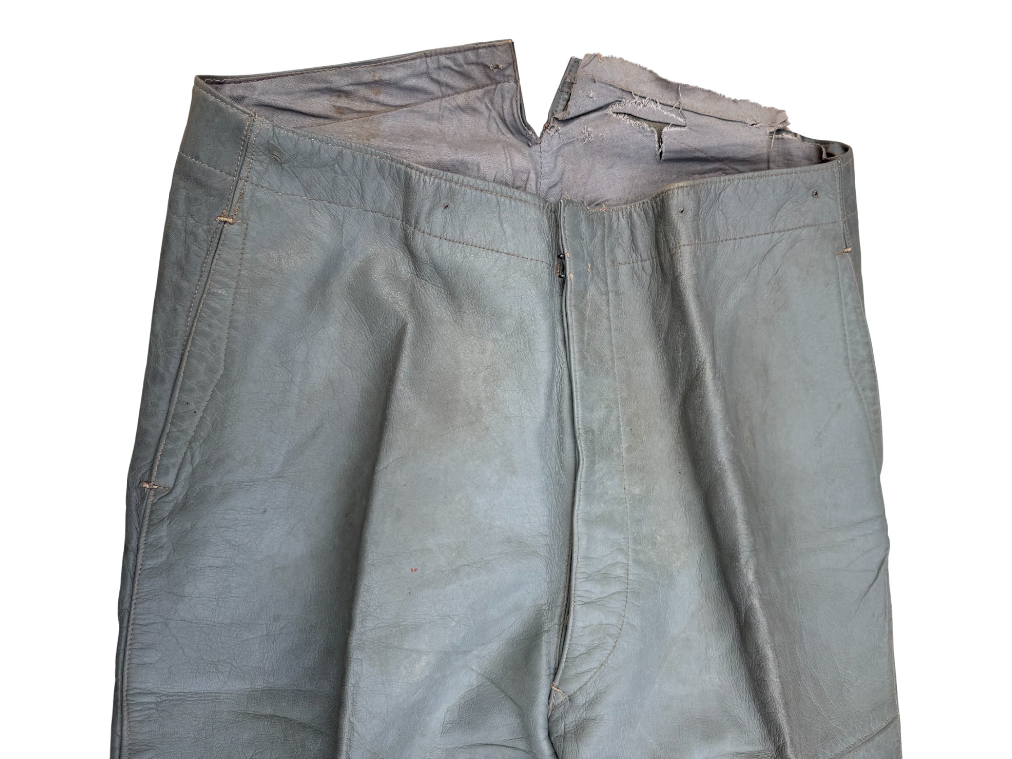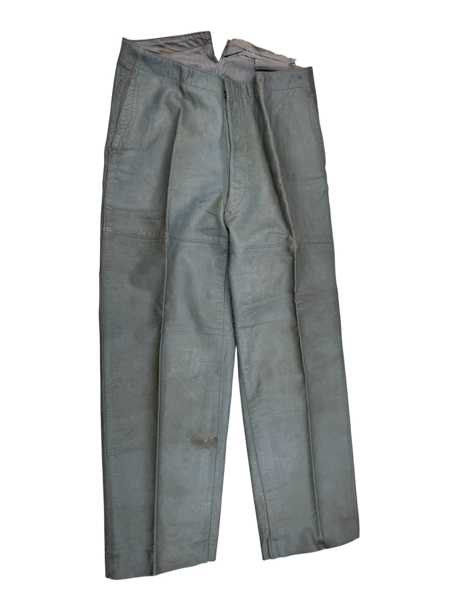 Kriegsmarine Gray leather trousers, no rear narrowing straps. Good condition.