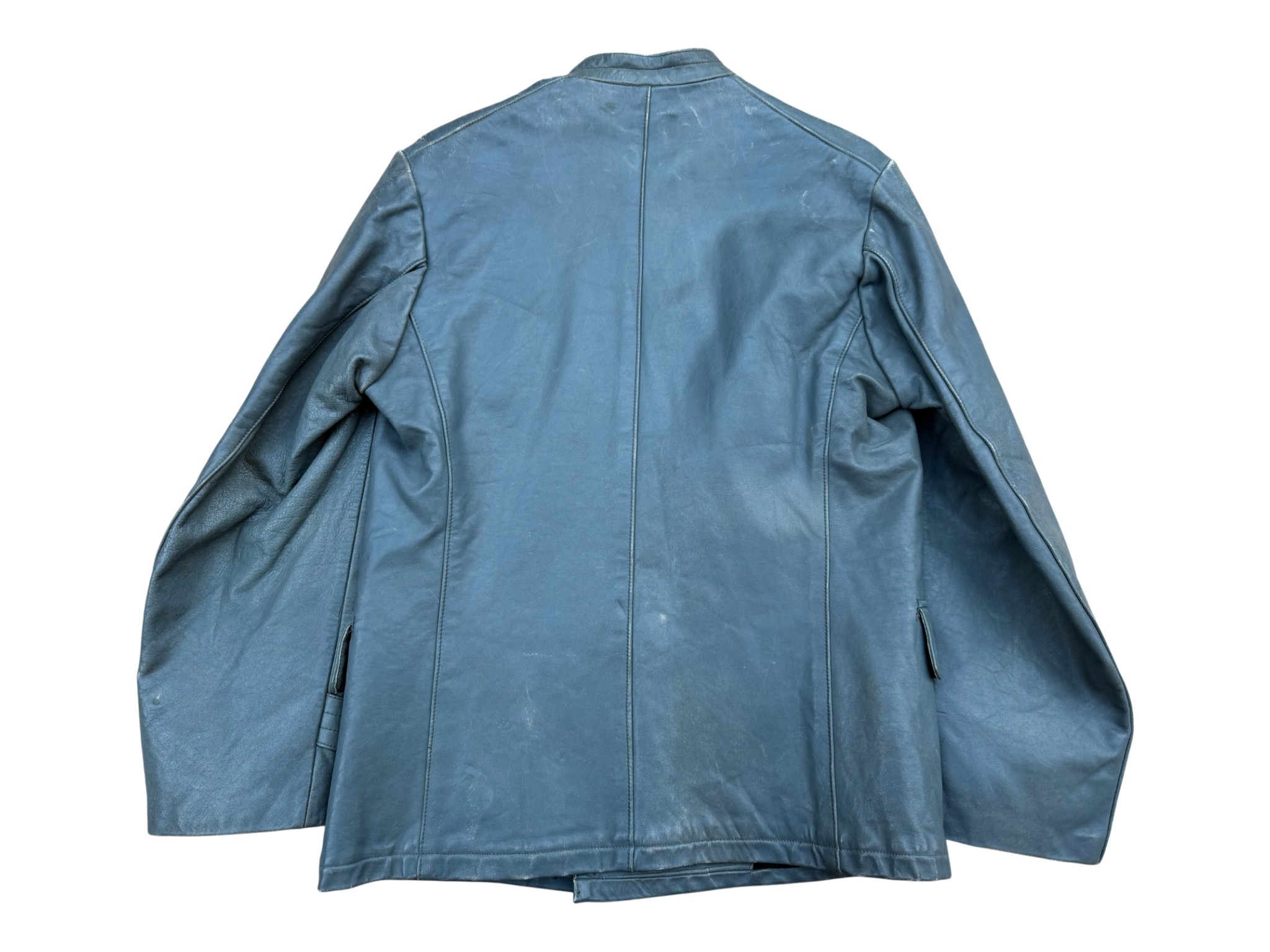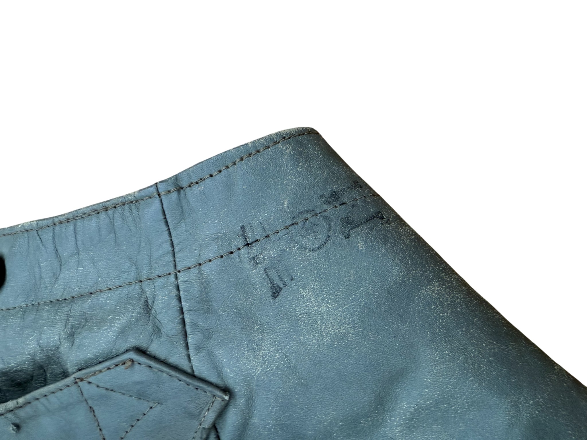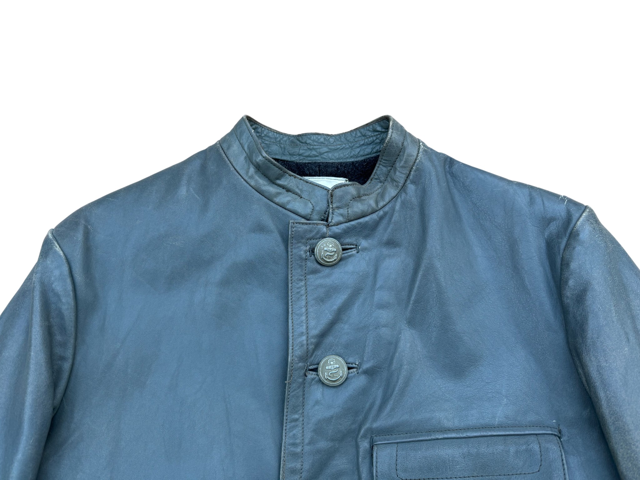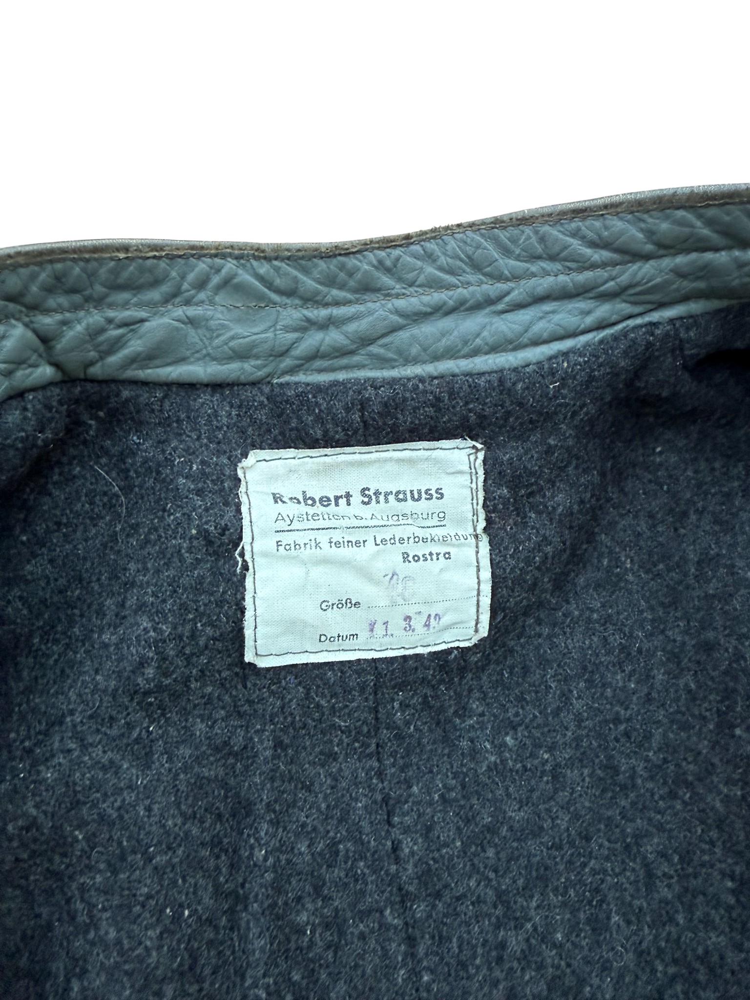 Kriegsmarine gray protective leather jacket and trousers “uboot” set in perfect condition, all orginal sevn buttons on jacket – looks like unused. all with same marker label. Hard to upgrade set !