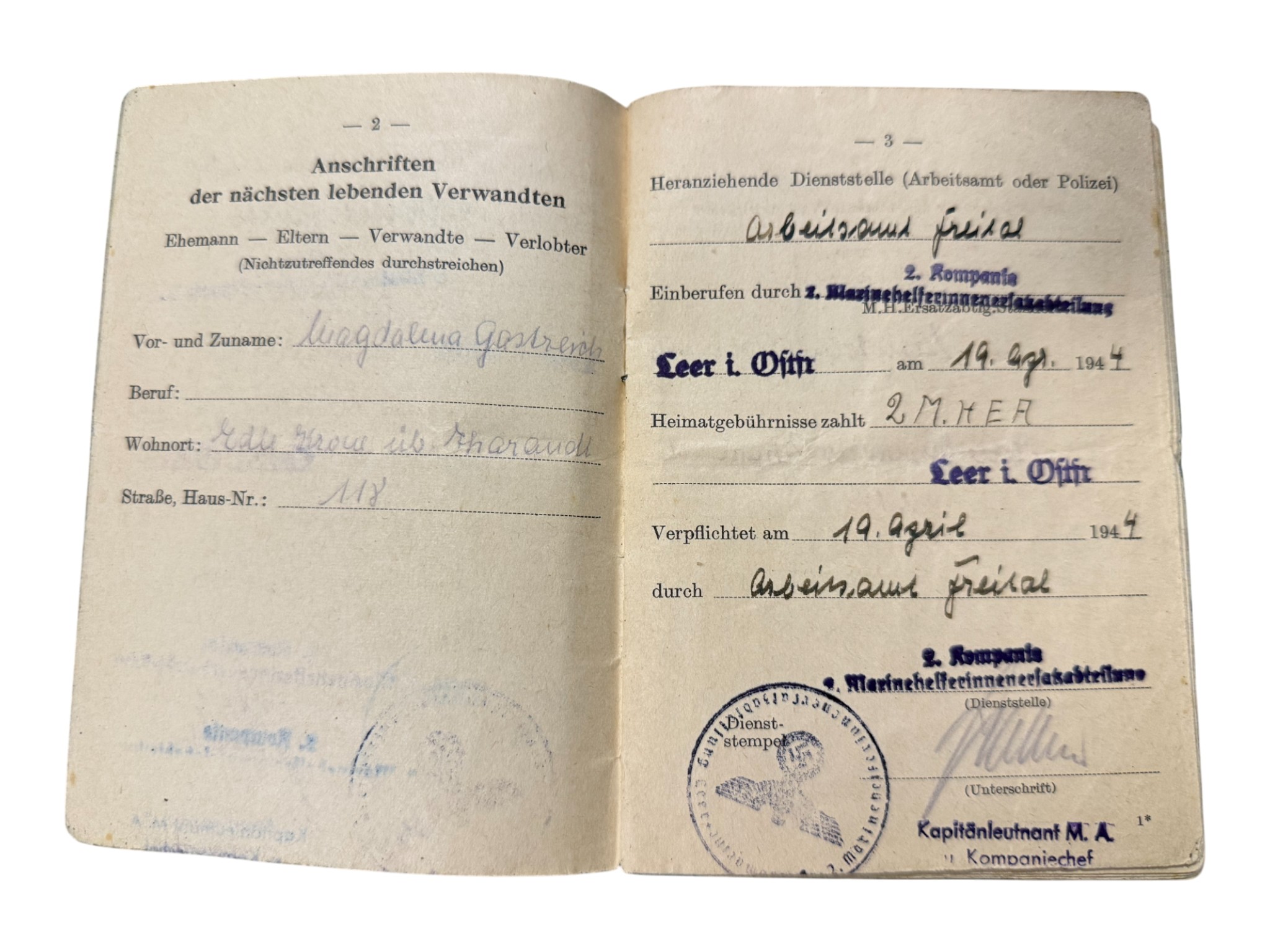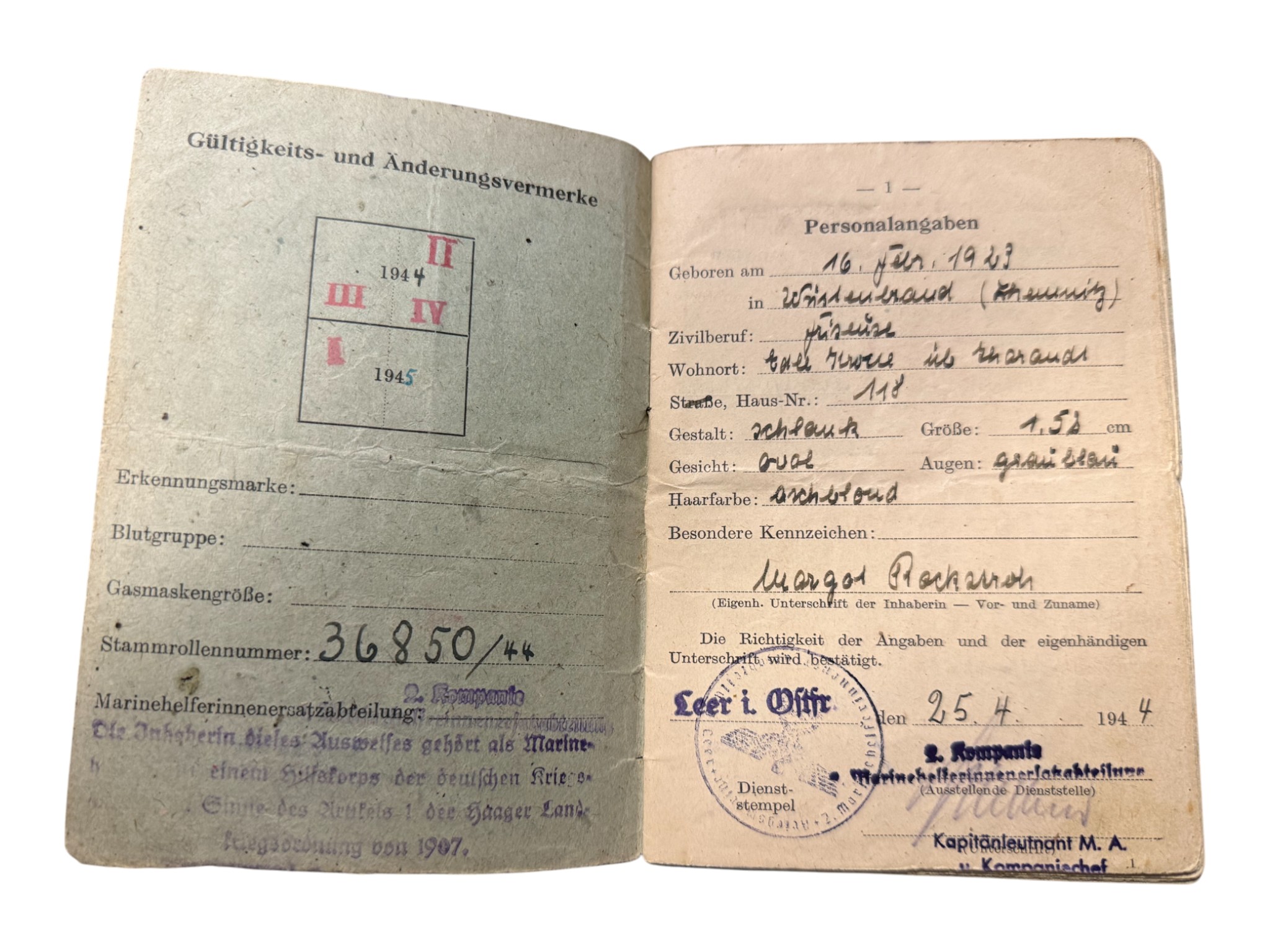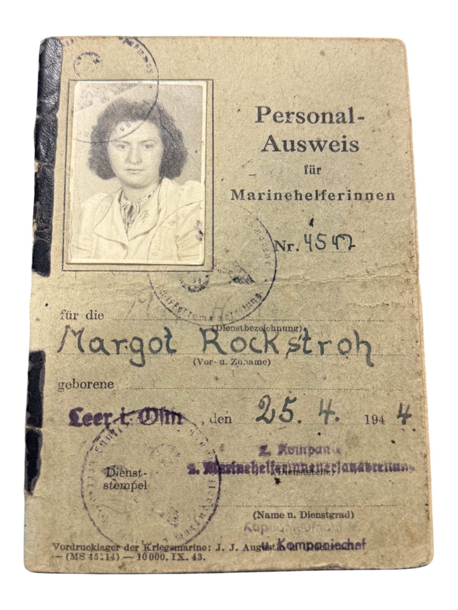 Kriegsmarine Helpers Marinehelferin Ausweis doc set, everything belonged to one woman.