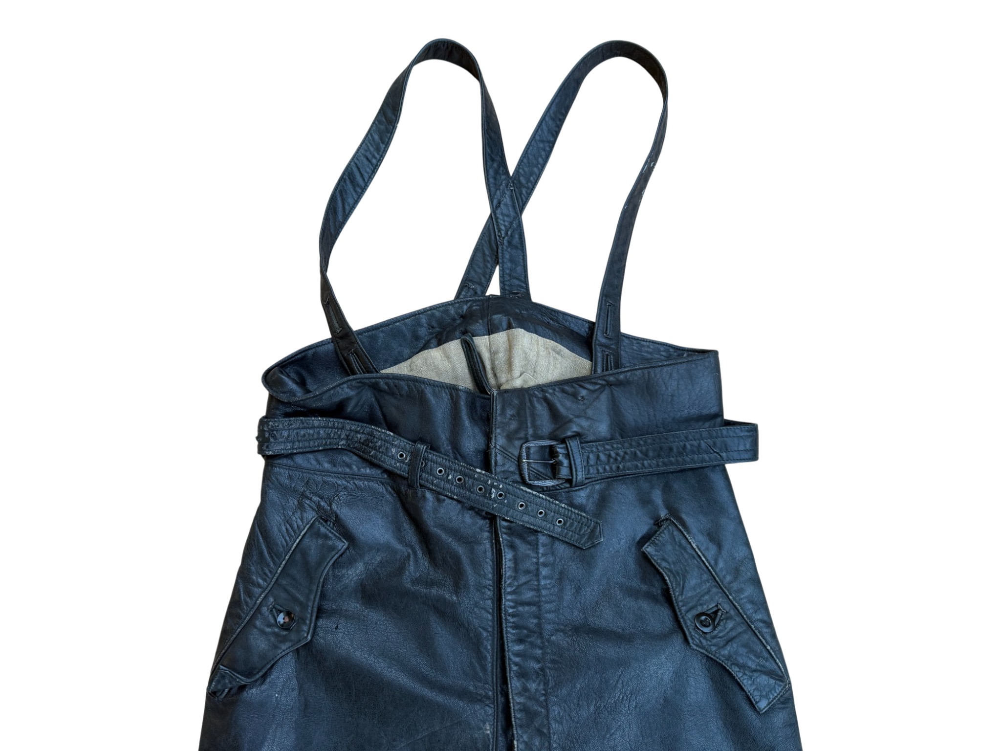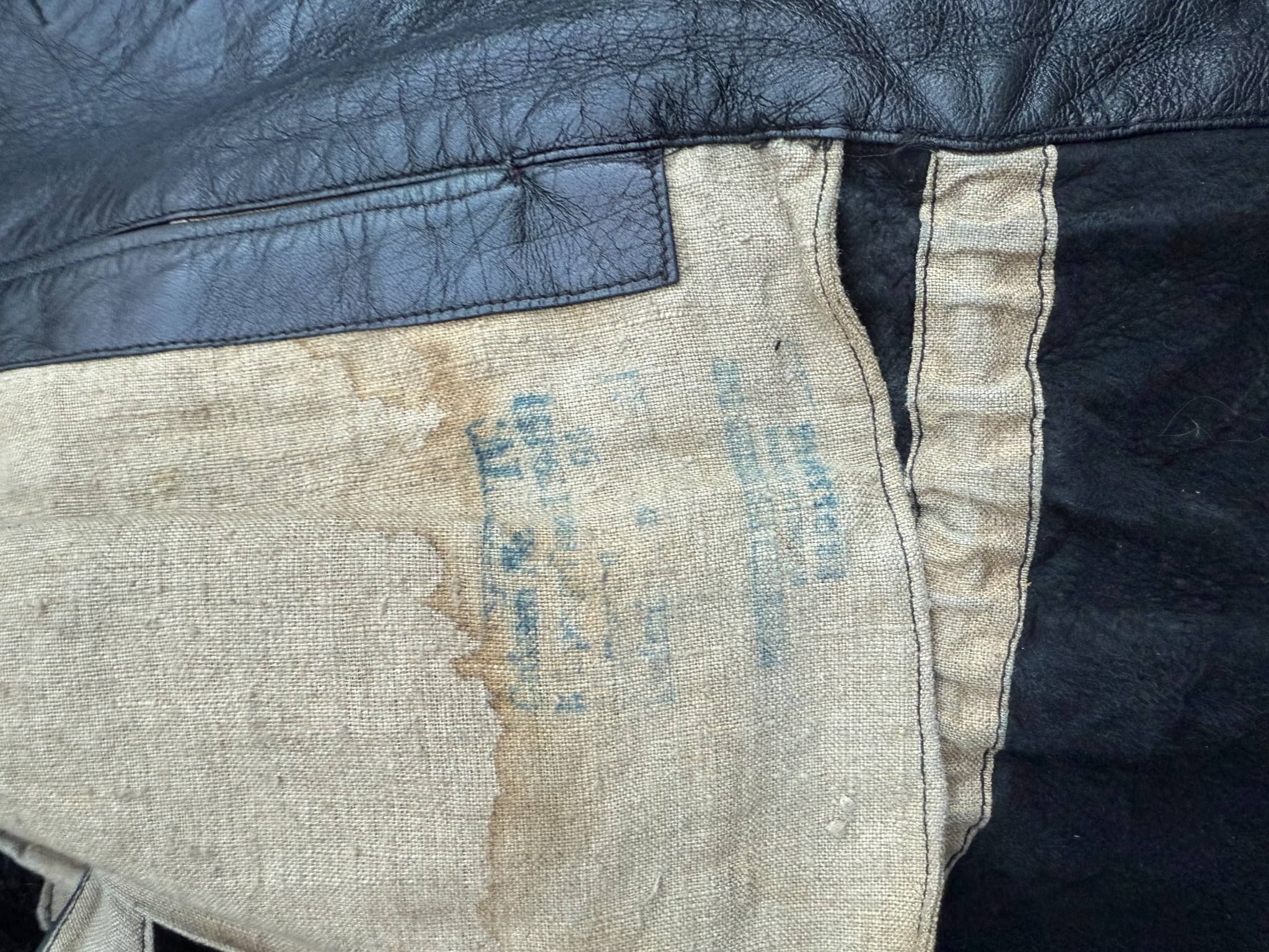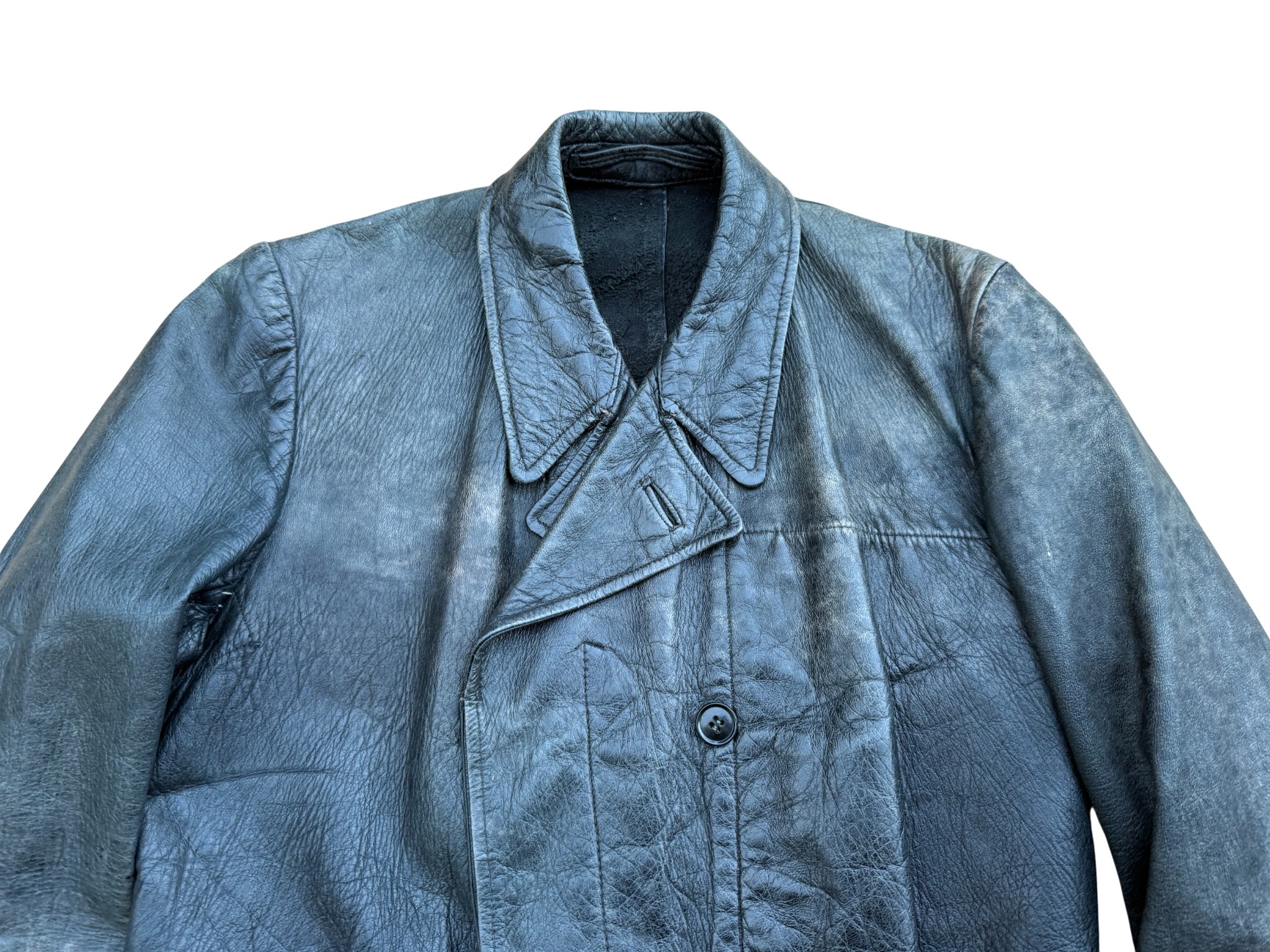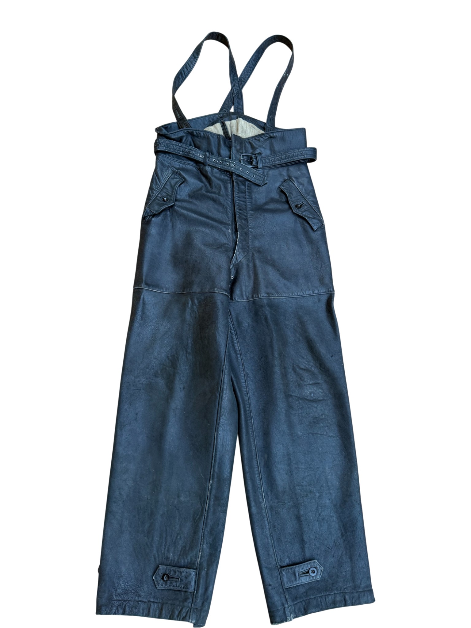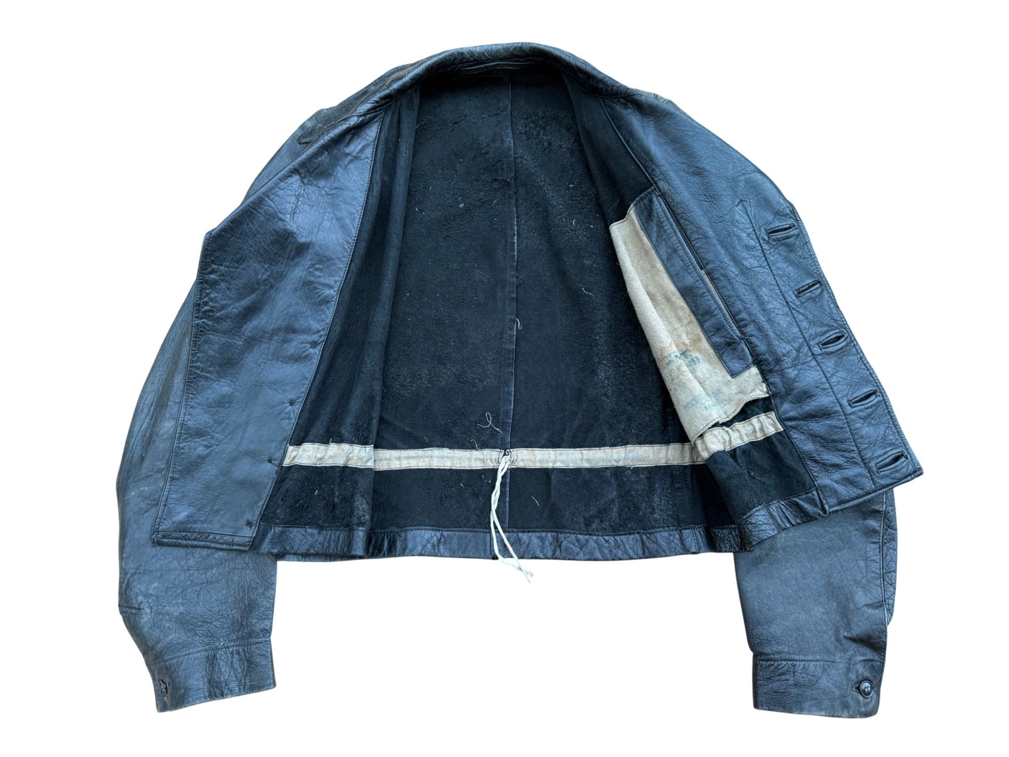 Kriegsmarine Kleinkampfverbände Black protective leather jacket and trousersset in perfect condition, all orginal sevn buttons on jacket – looks like unused. Set with good contion trousers, all with stamps. Hard to upgrade set !