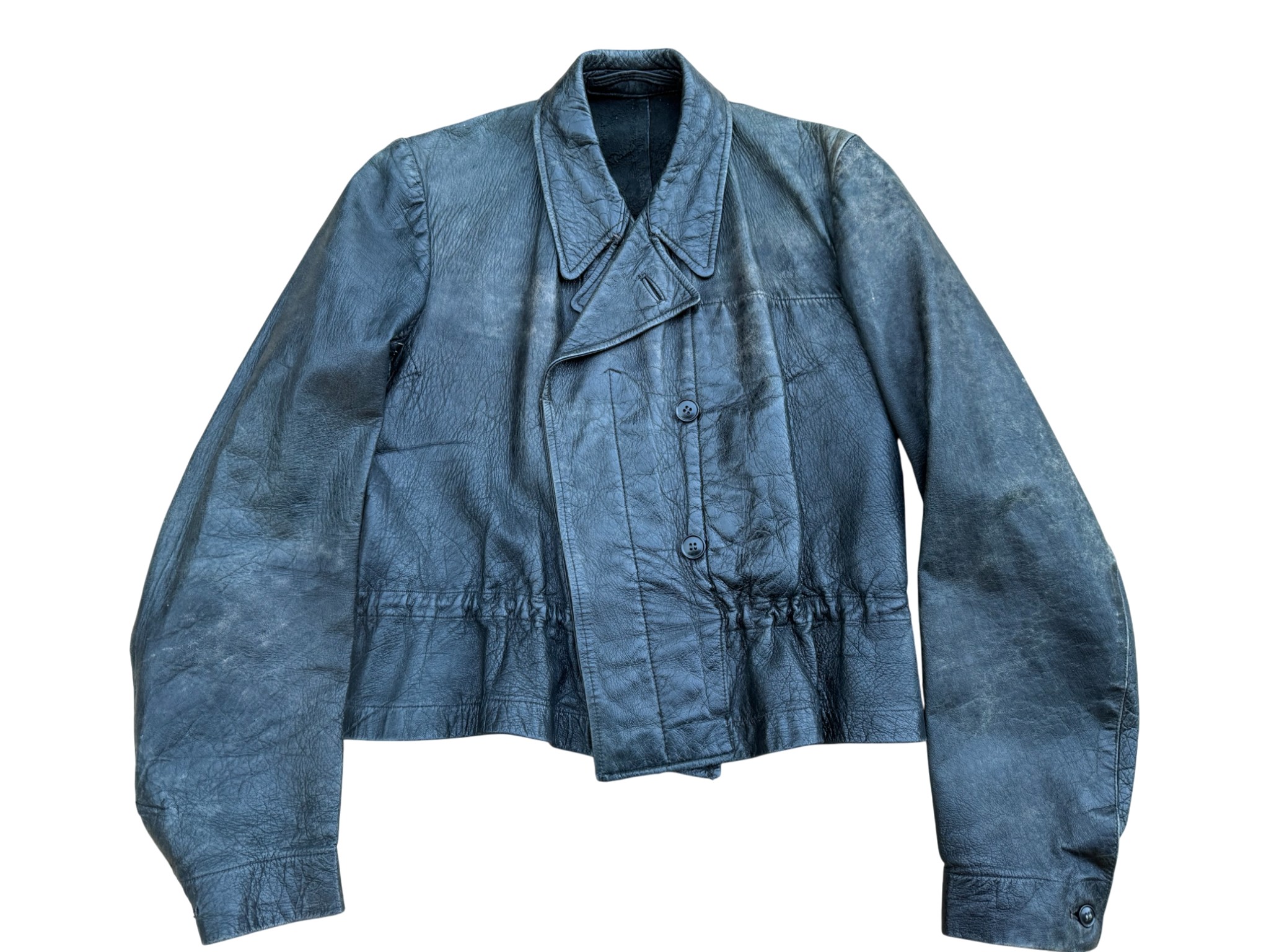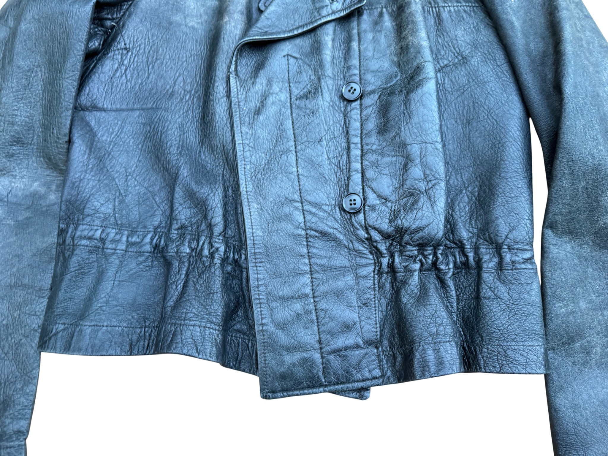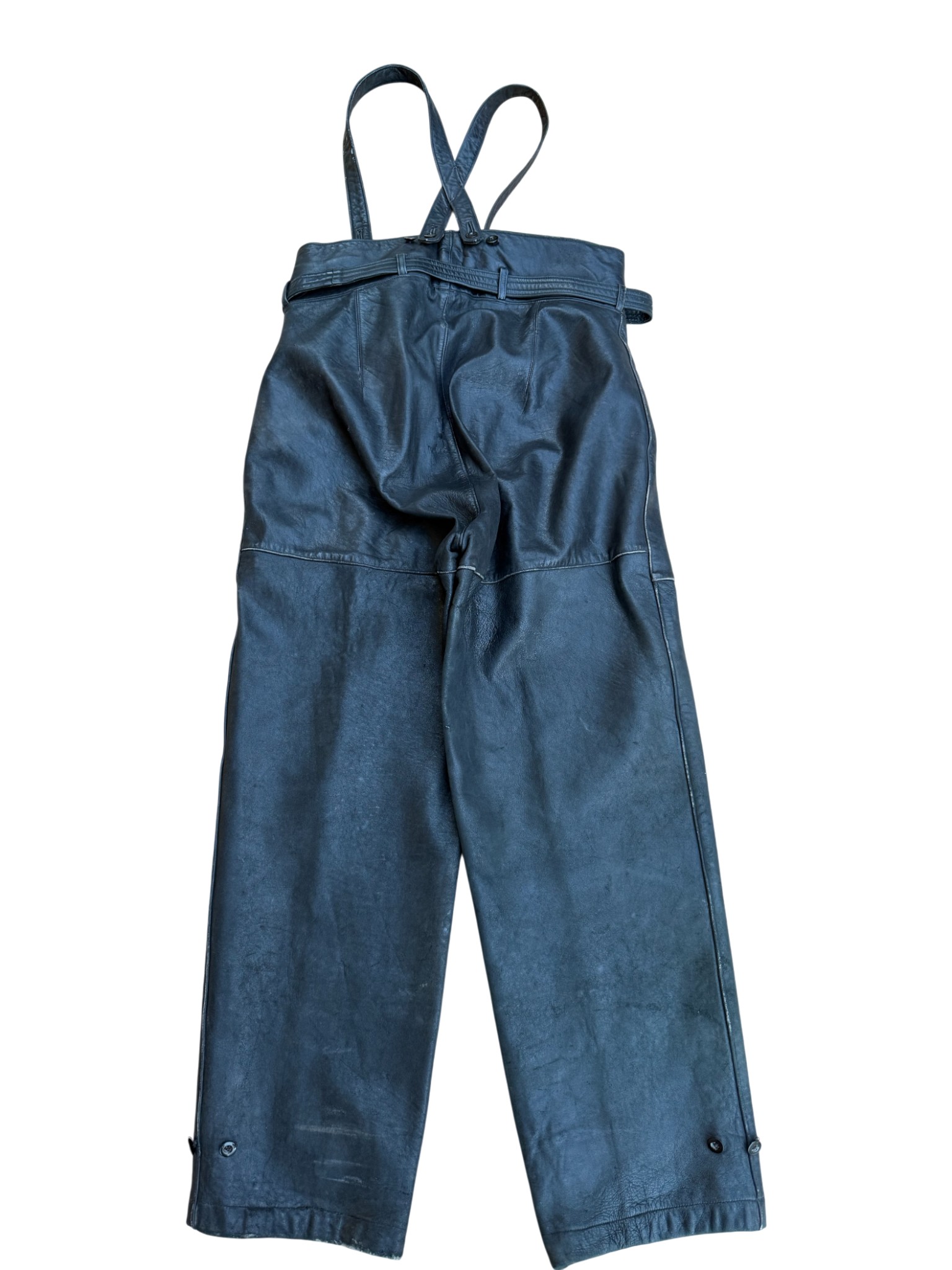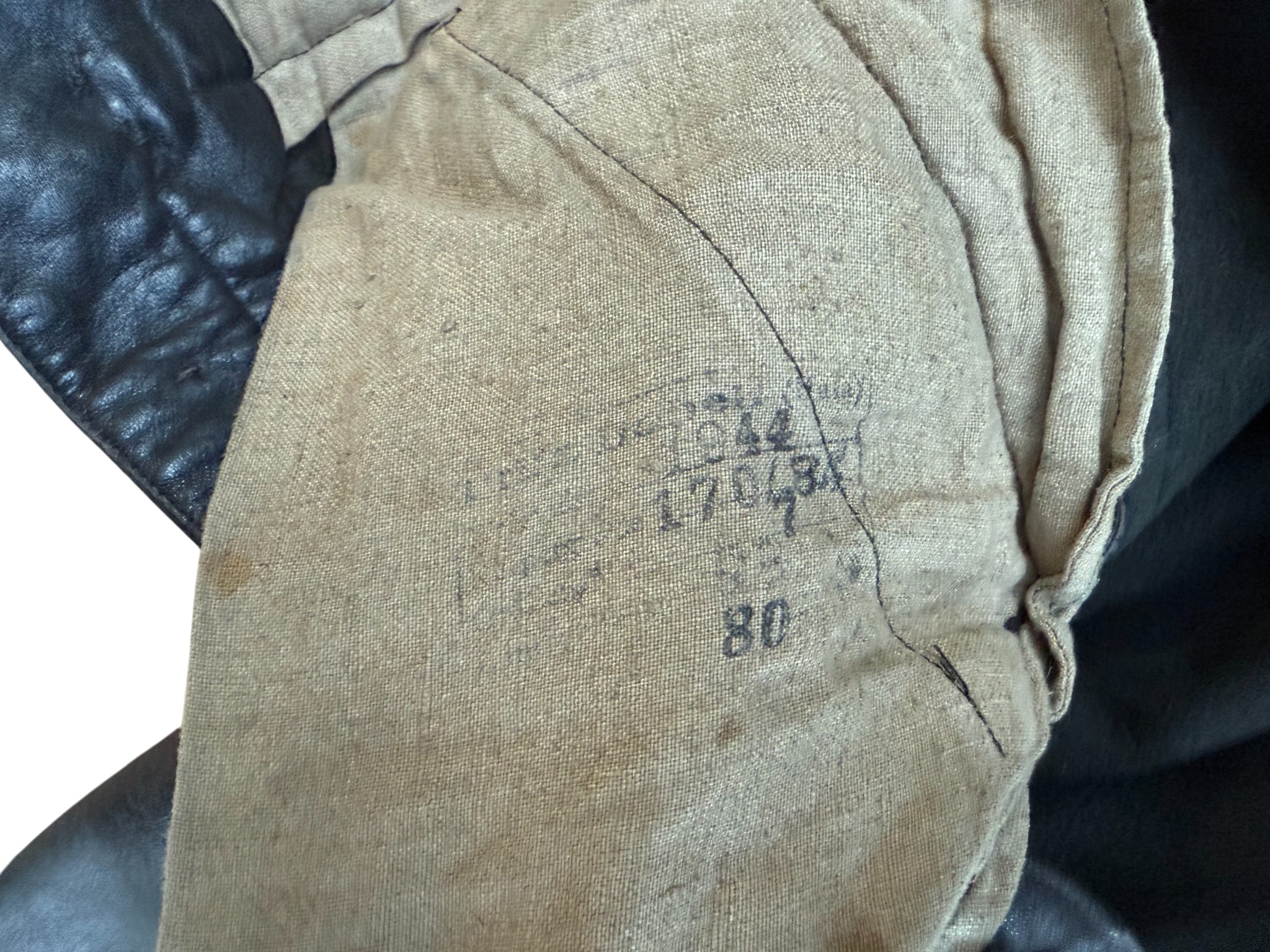 Kriegsmarine Kleinkampfverbände Black protective leather jacket and trousersset in perfect condition, all orginal sevn buttons on jacket – looks like unused. Set with good contion trousers, all with stamps. Hard to upgrade set !