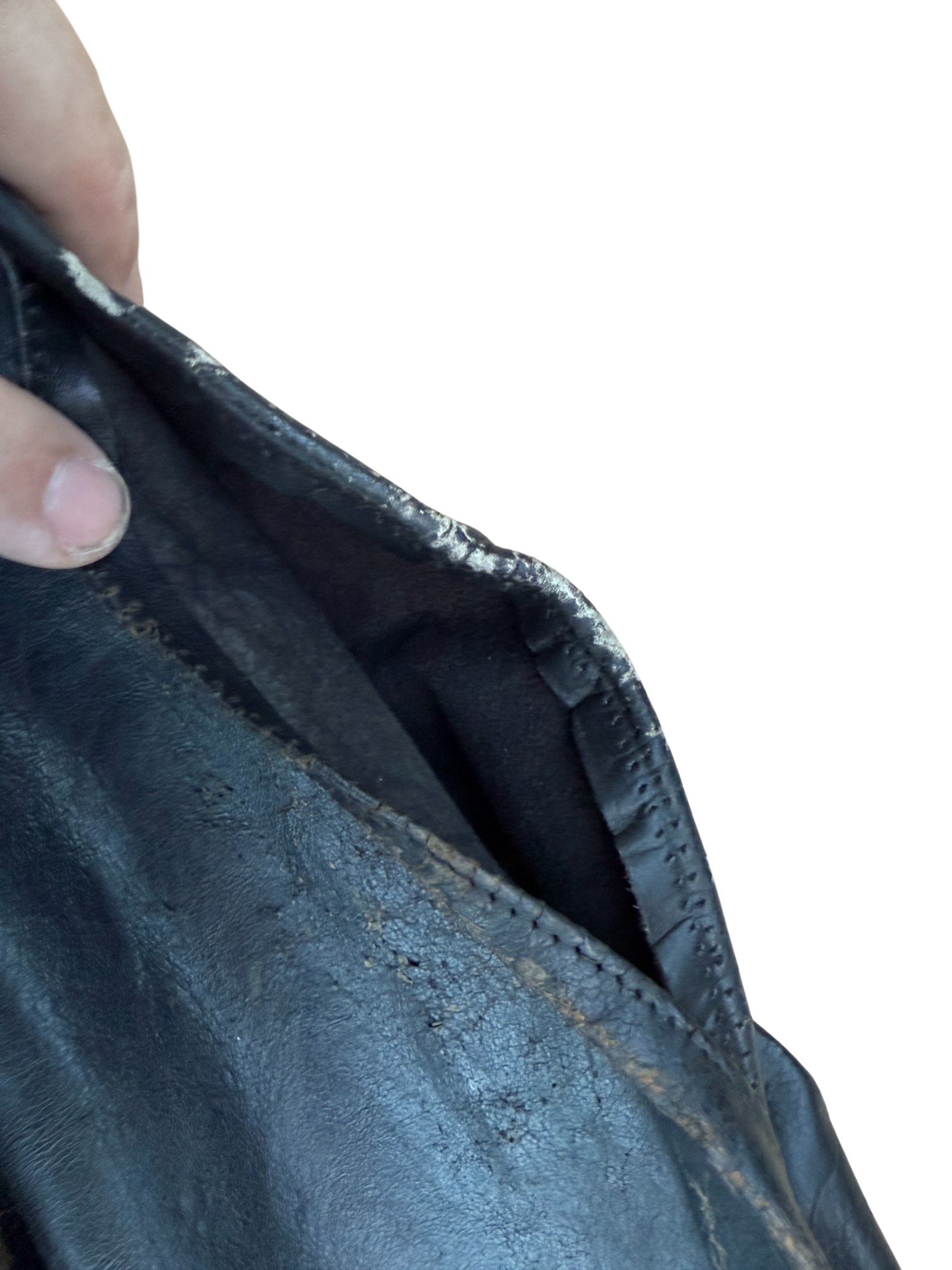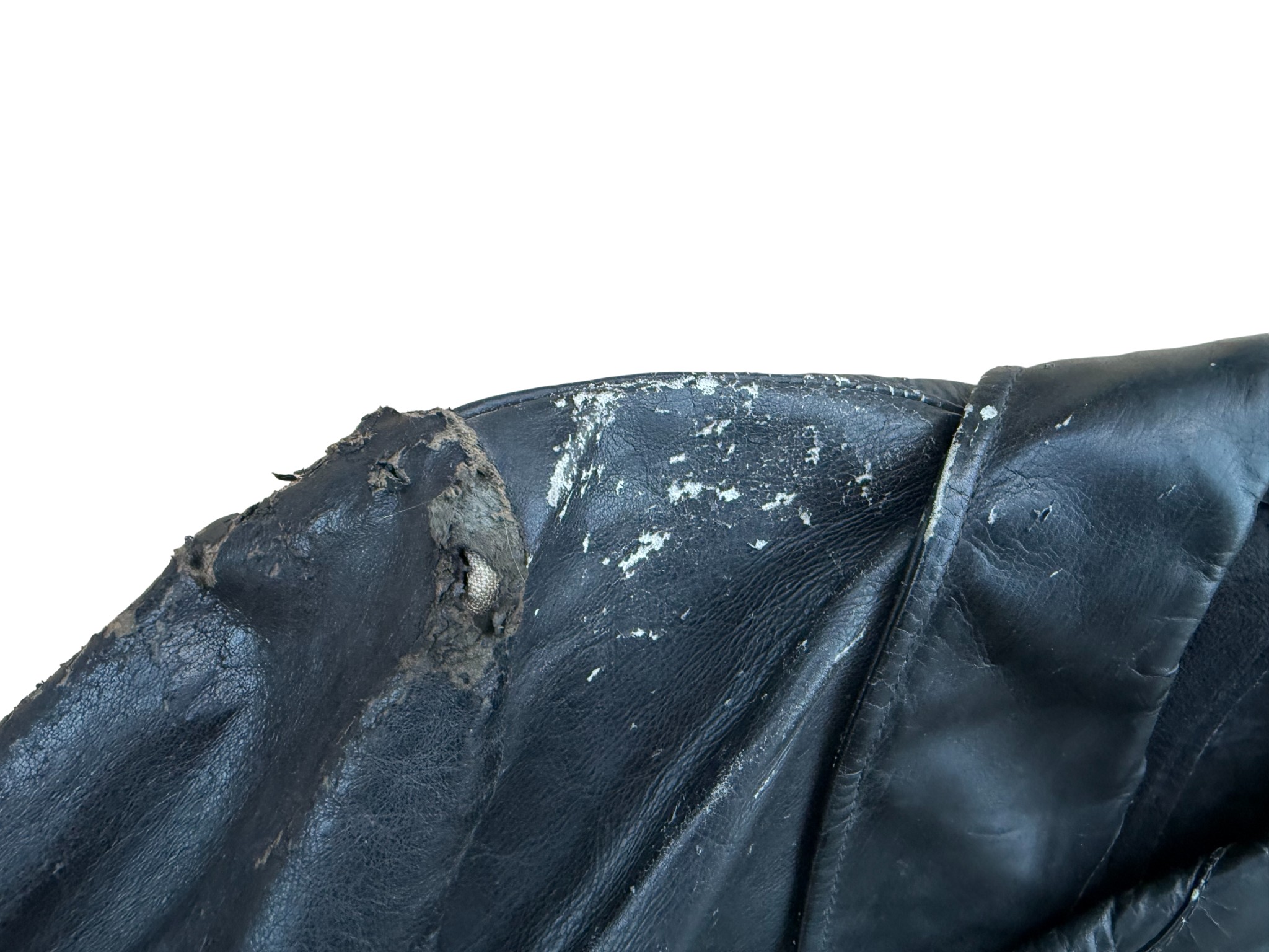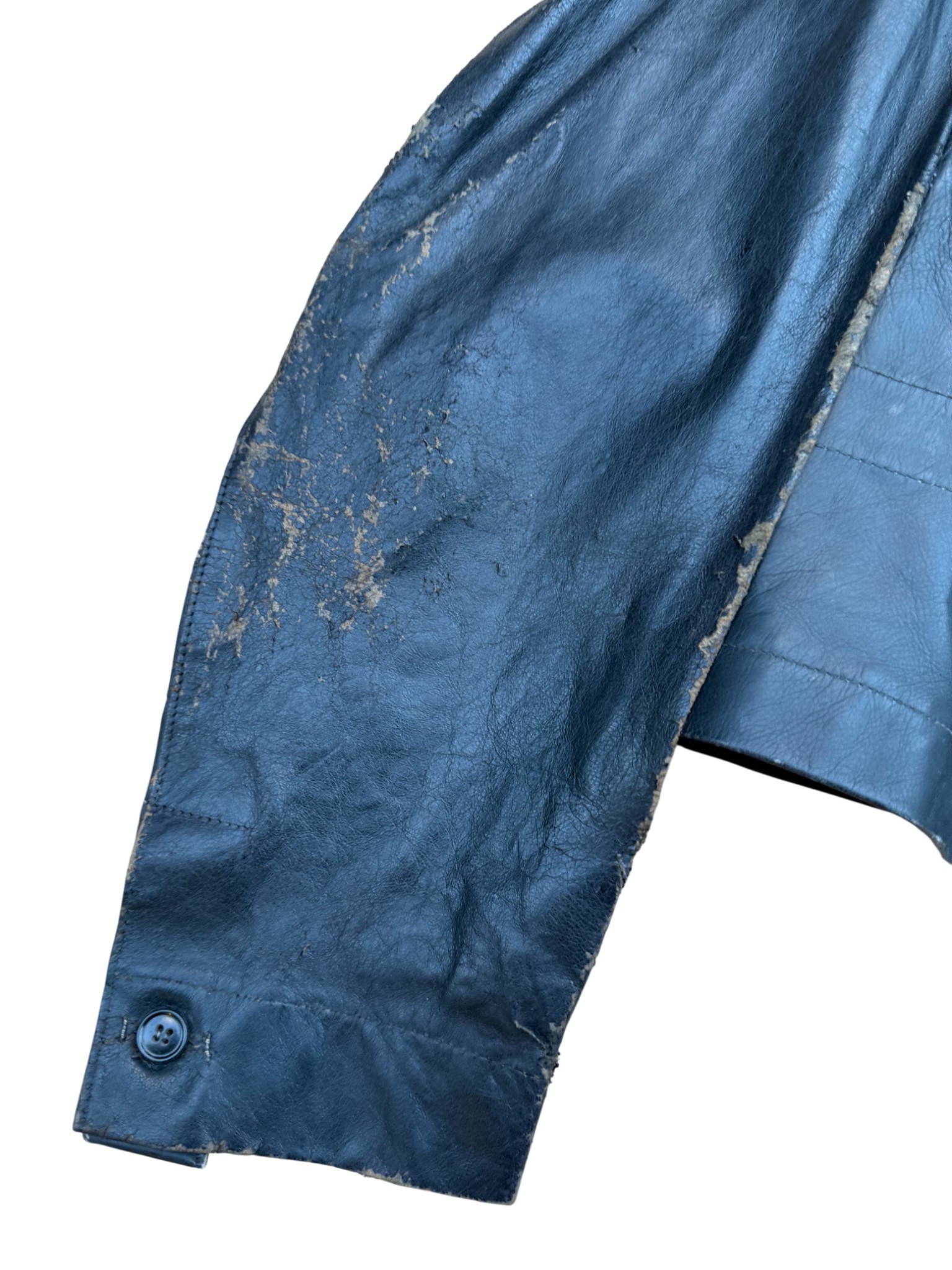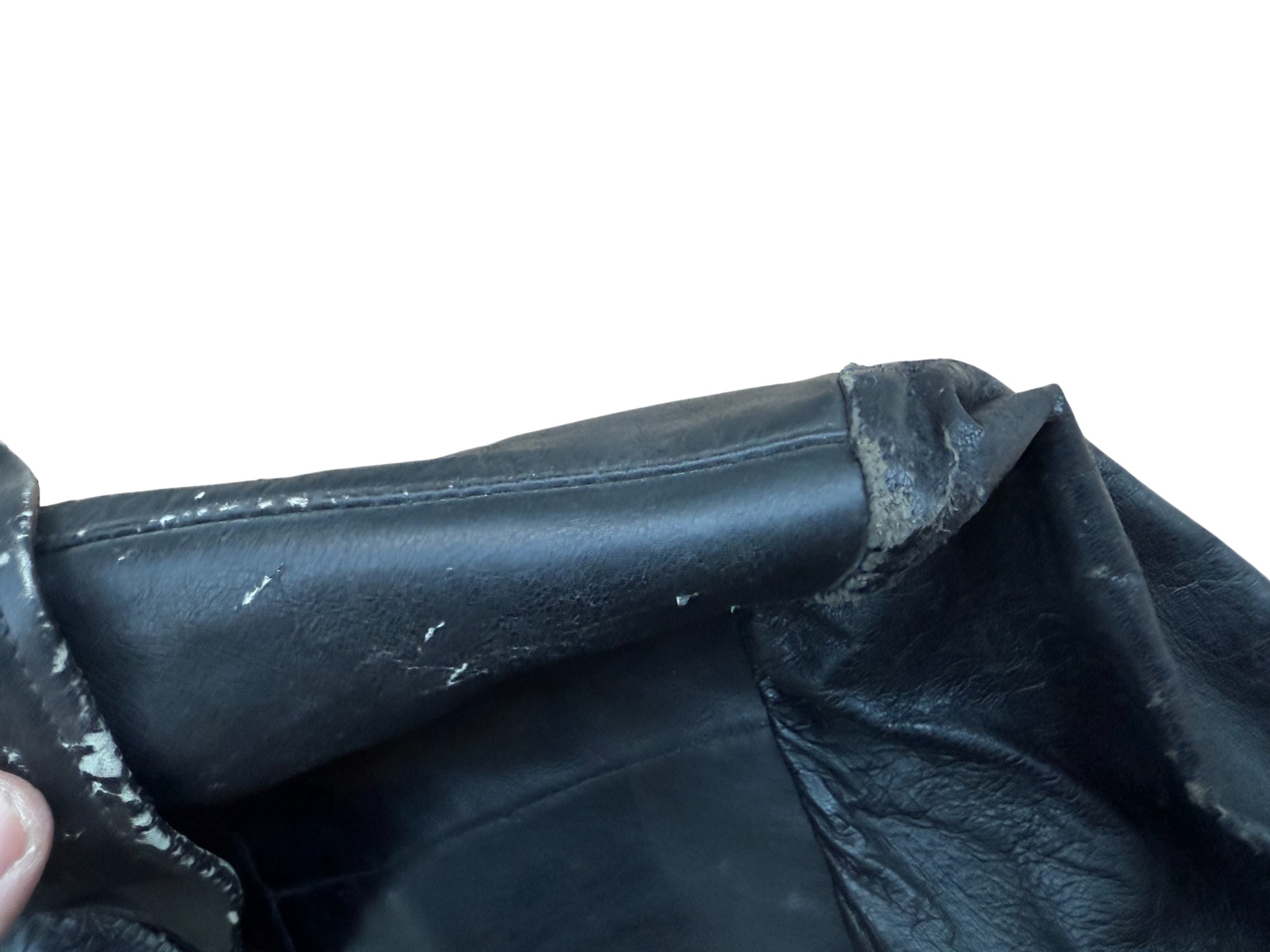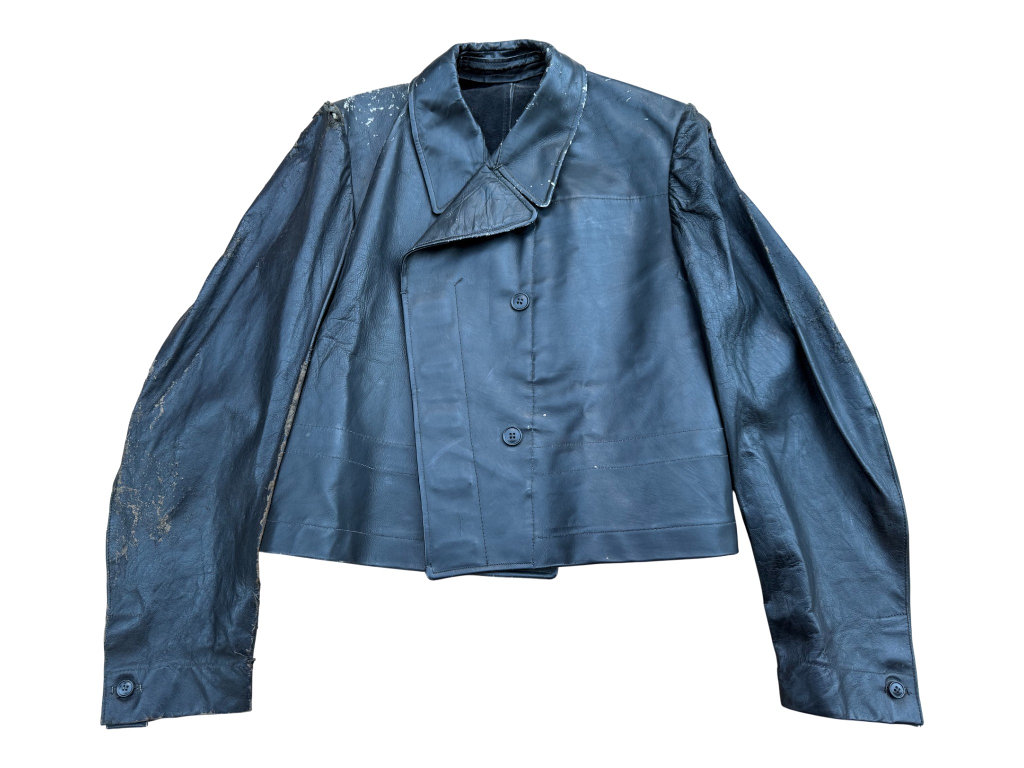 Kriegsmarine Kleinkampfverbände Black protective leather jacket, with paper tag. It has signs of storage, some abrasions, and a split seam on the sleeve. Generally good condition