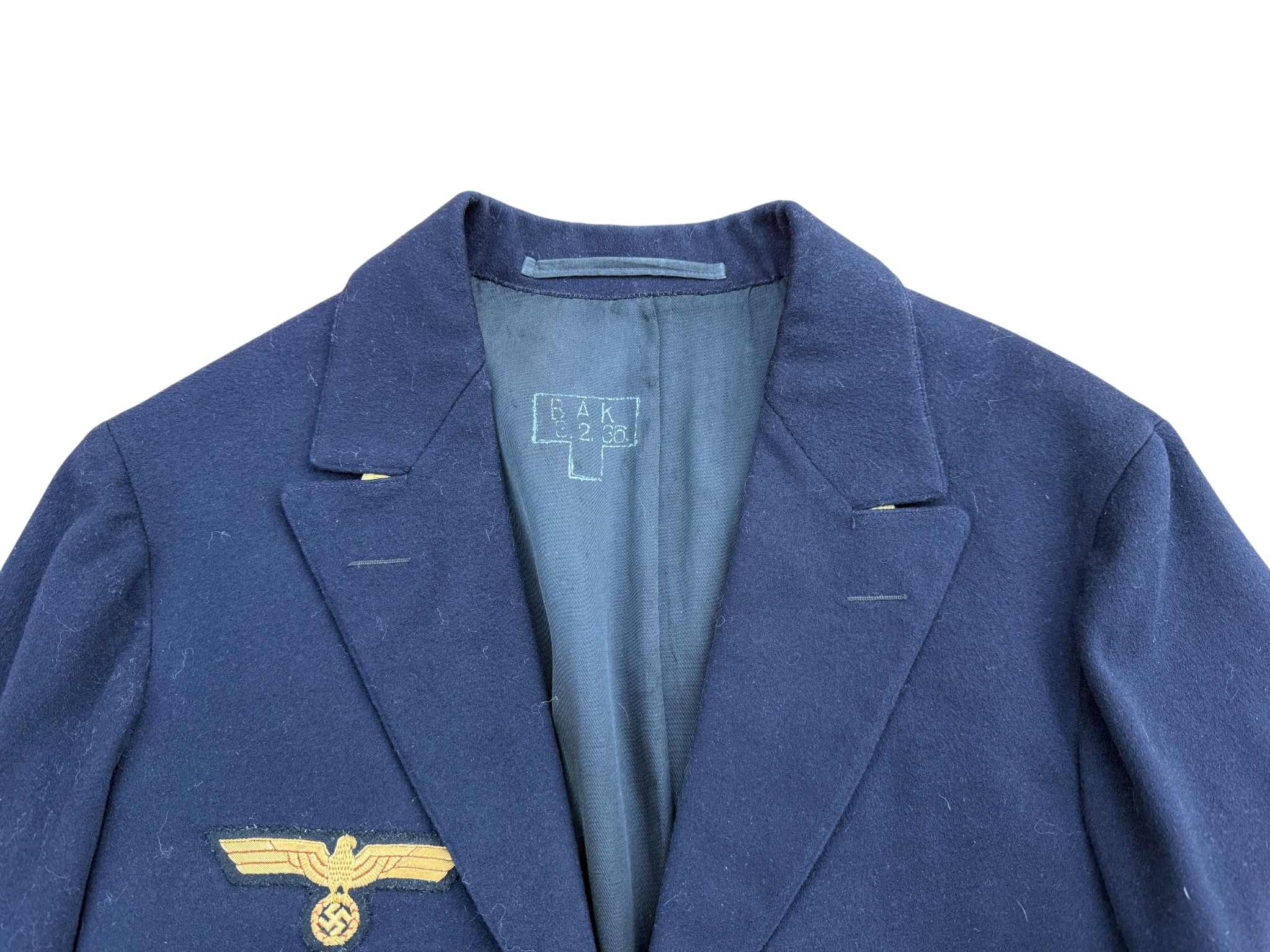 Kriegsmarine NCO Dress Parade Tunic, in very good condition, nicely signed, with personalized embroidered initials inside. Very rare patch.