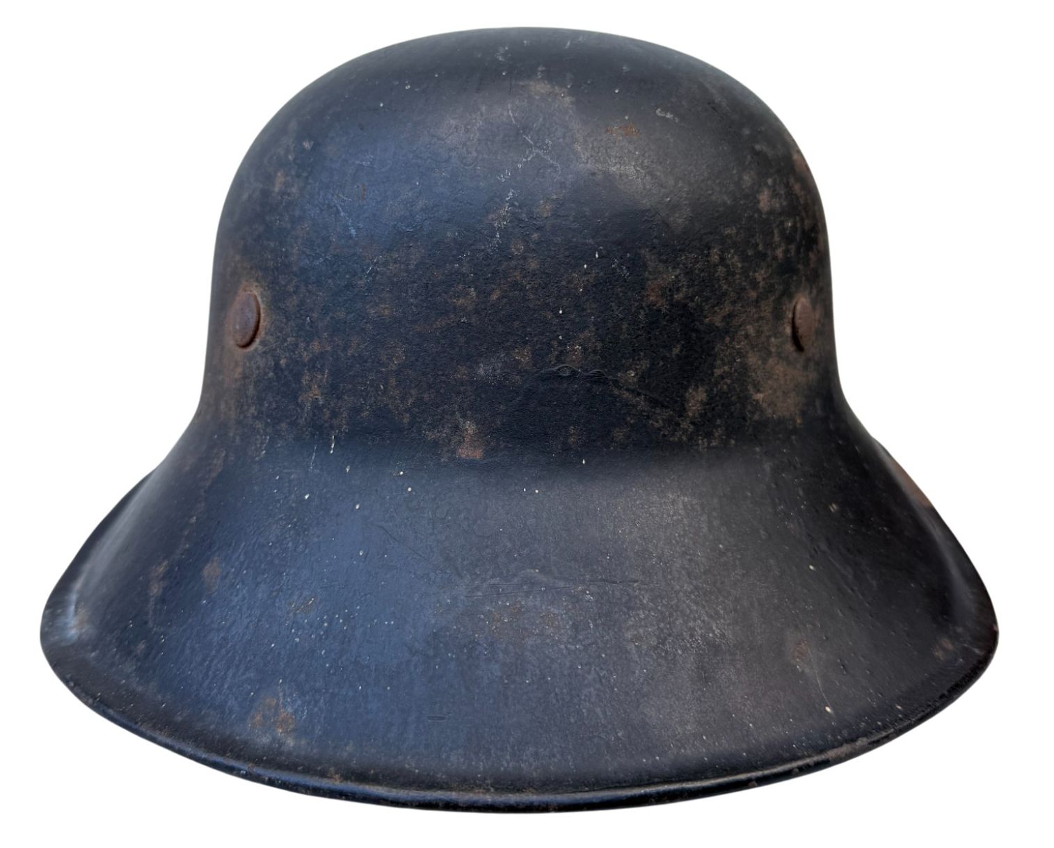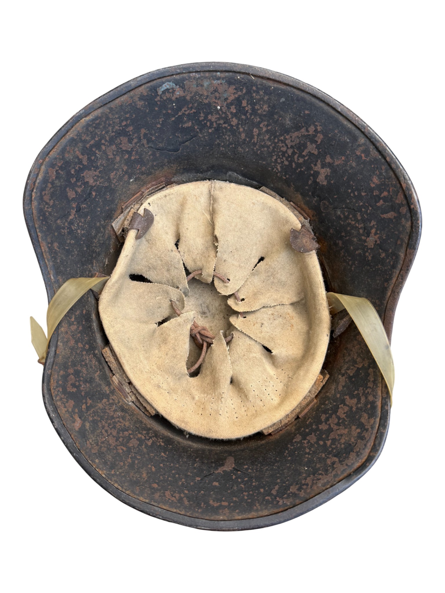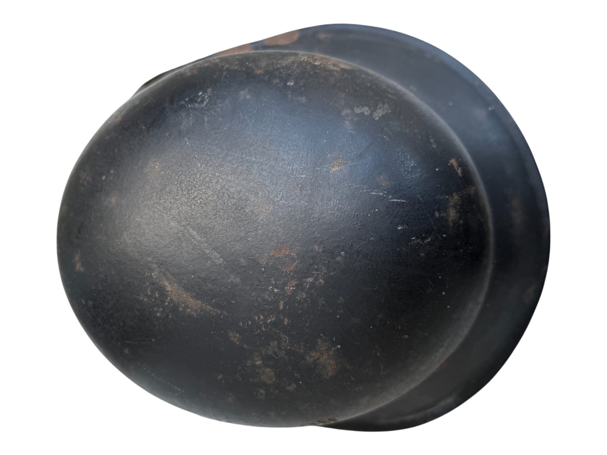 Last model of luftschutz helmet, typical w/o decal, clear plastic chinstrap. Good unused condition.