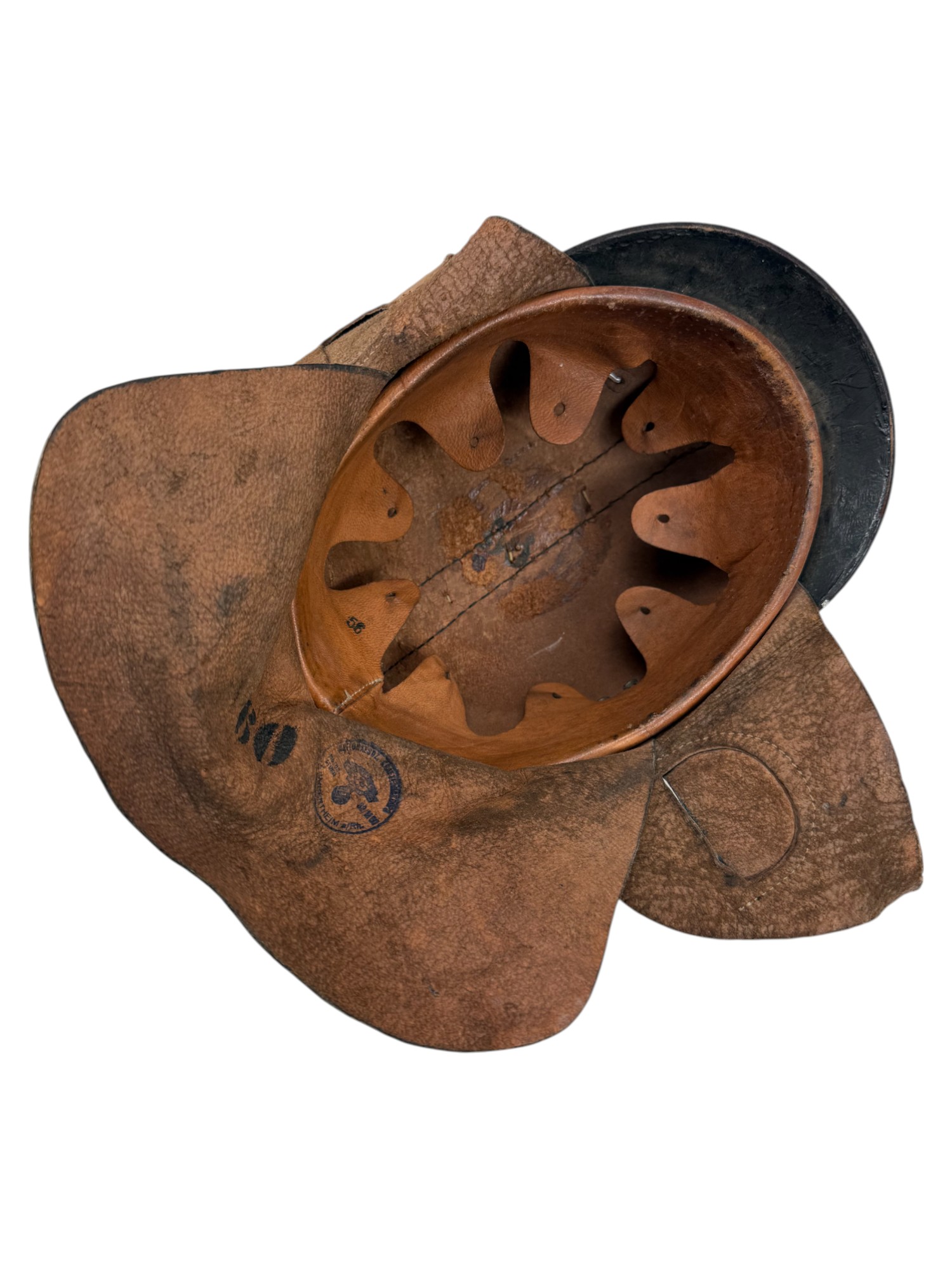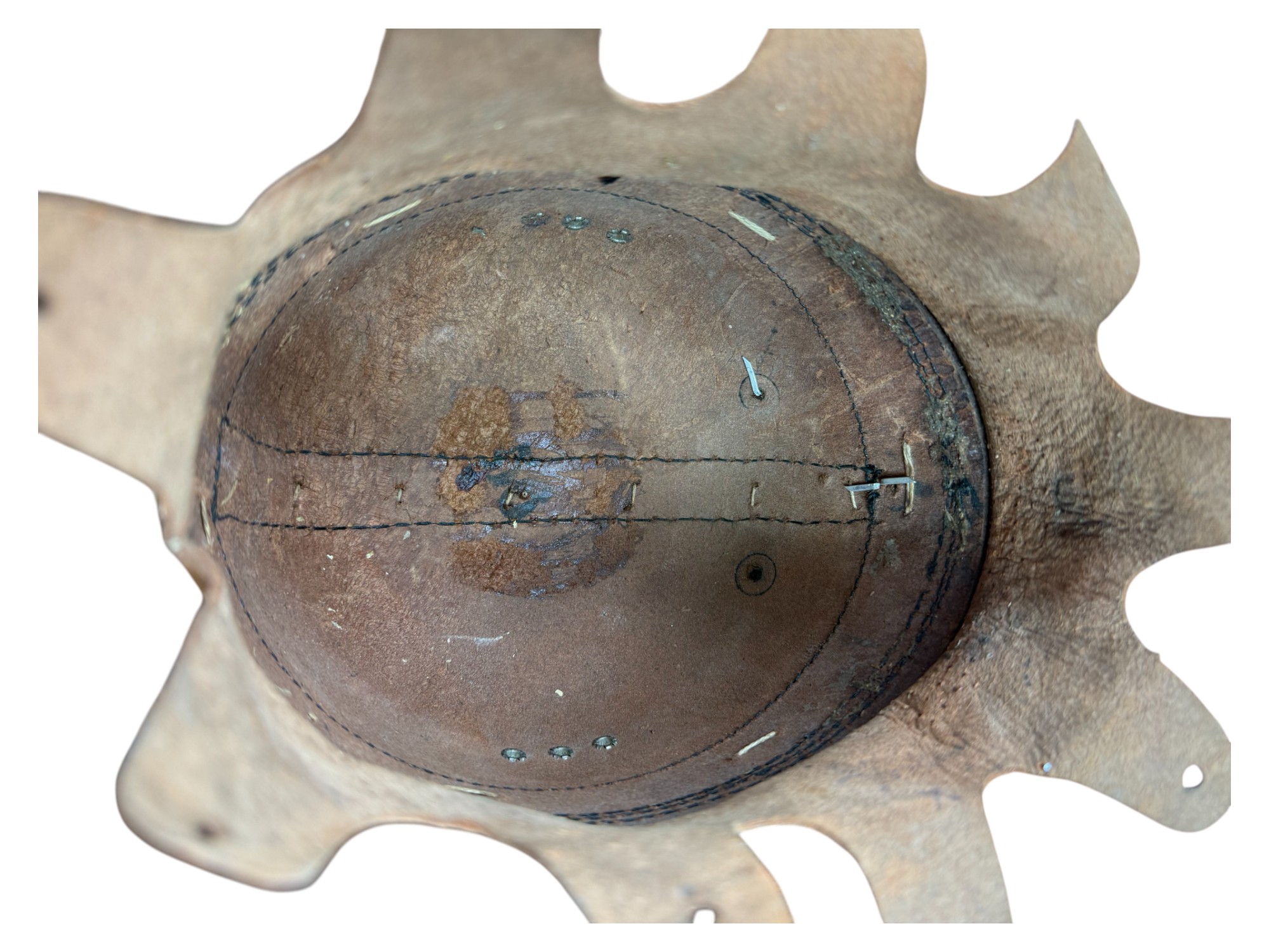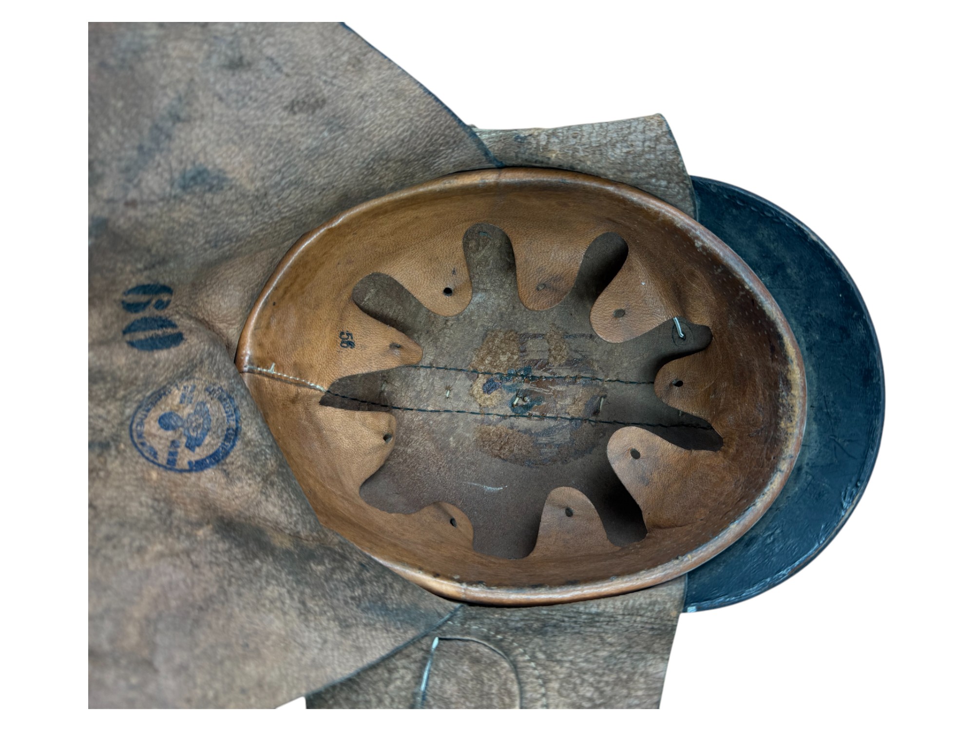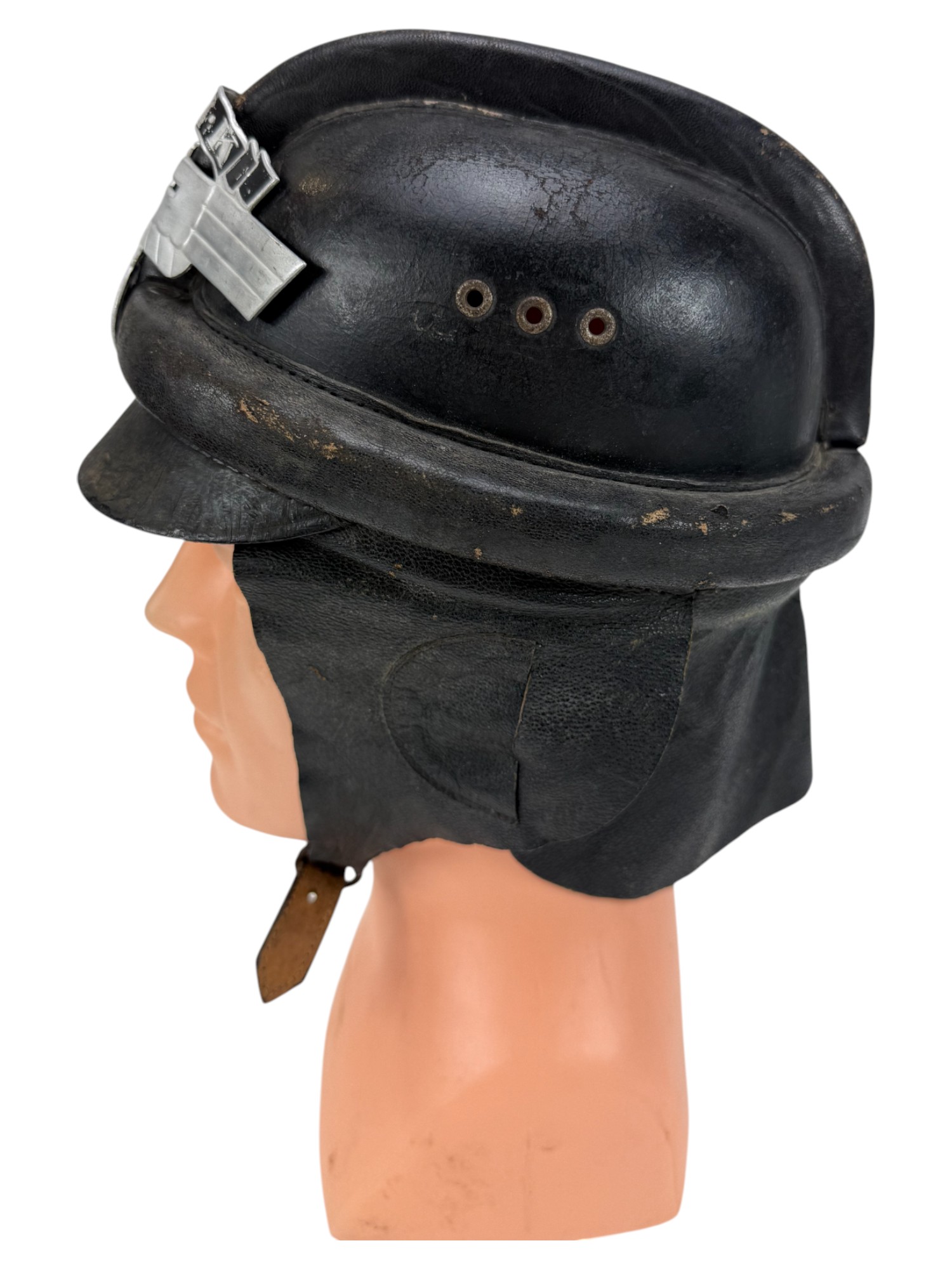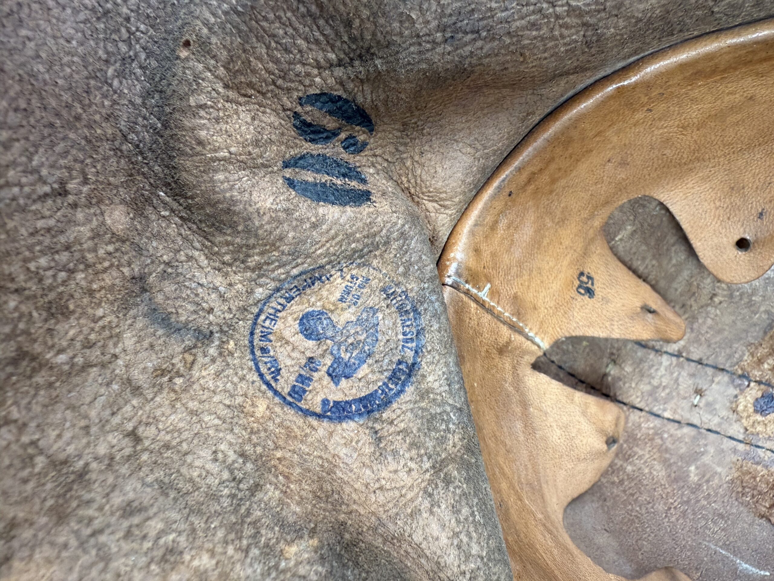 Nskk Crash Helmet, in good condition, with nice wisible stamps and size stamps. Straps w/o damages. Leather soft. Huge aluminium eagle with visble prong damage (left side) but it holds the helmet nicely.