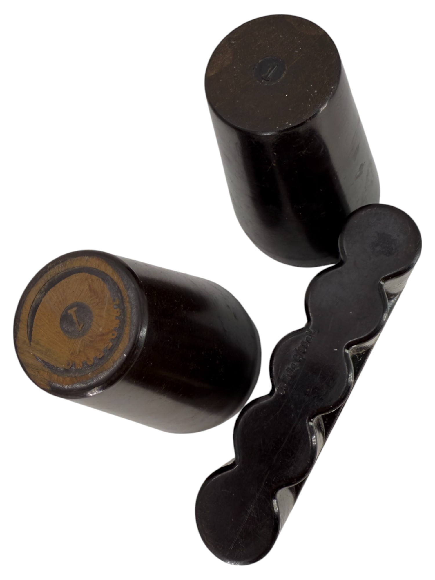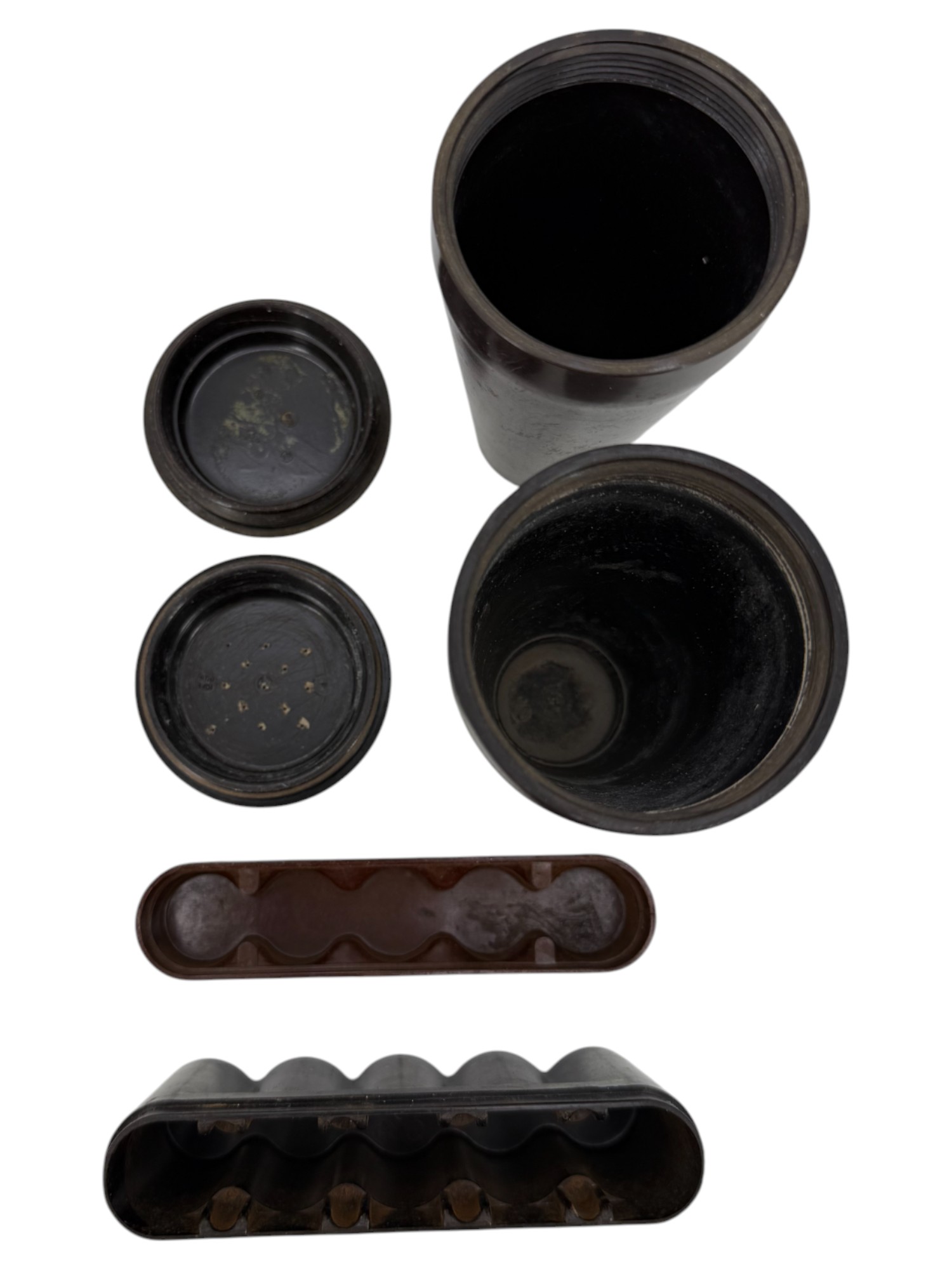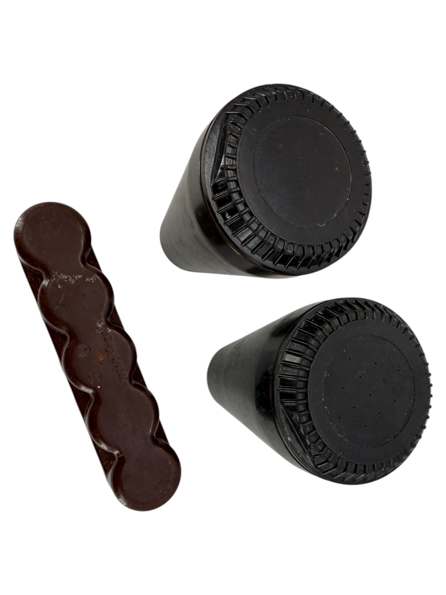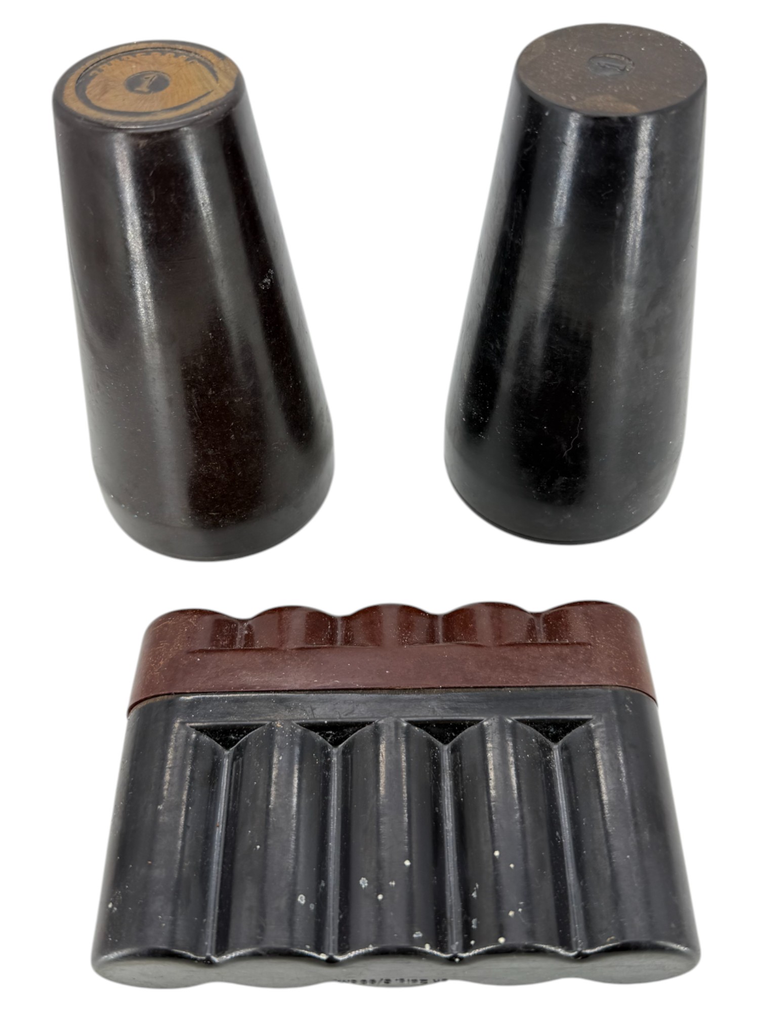 Set of bakelite containers for Fusez, one lid converted into a salt shaker. Price for set