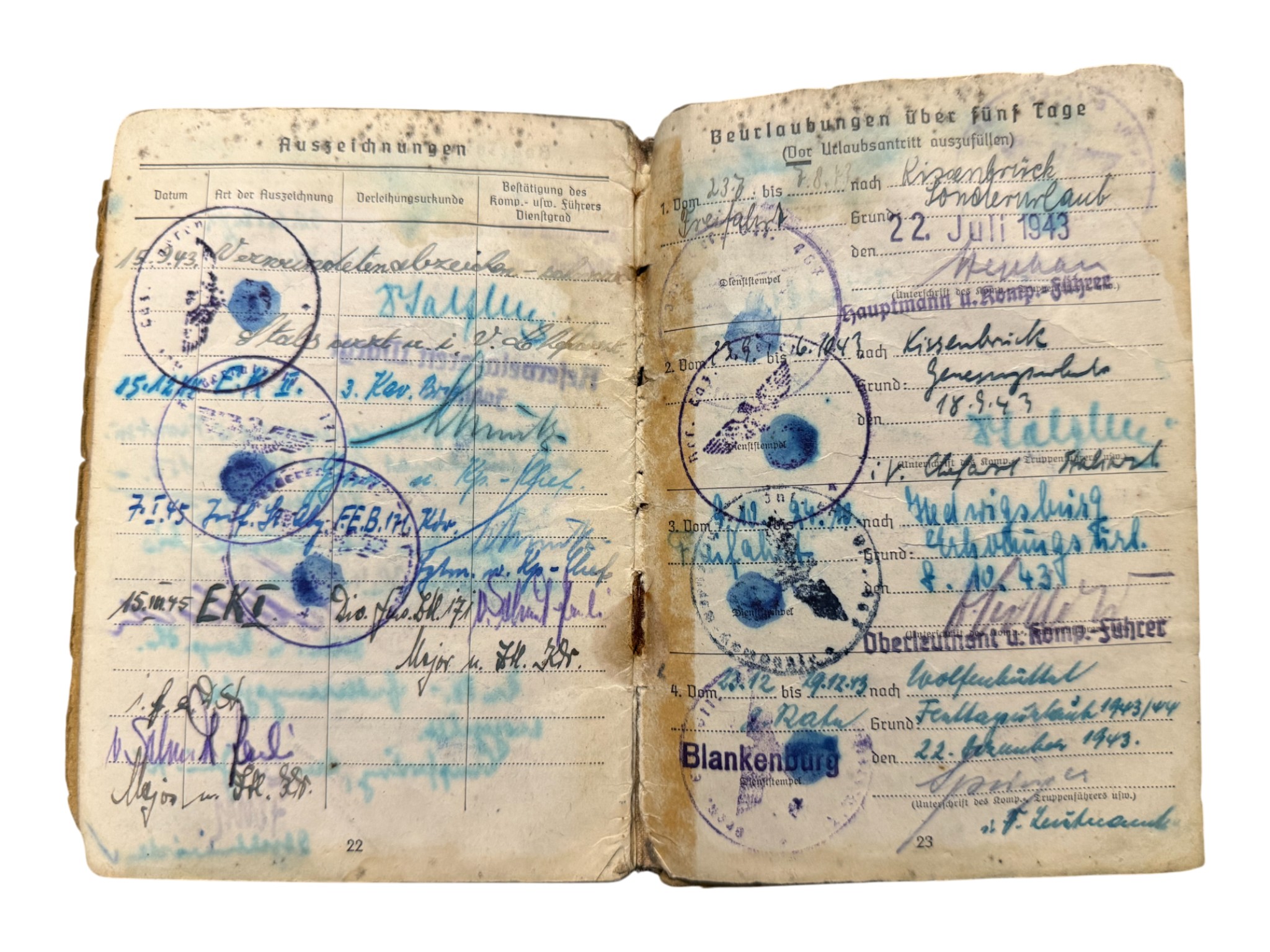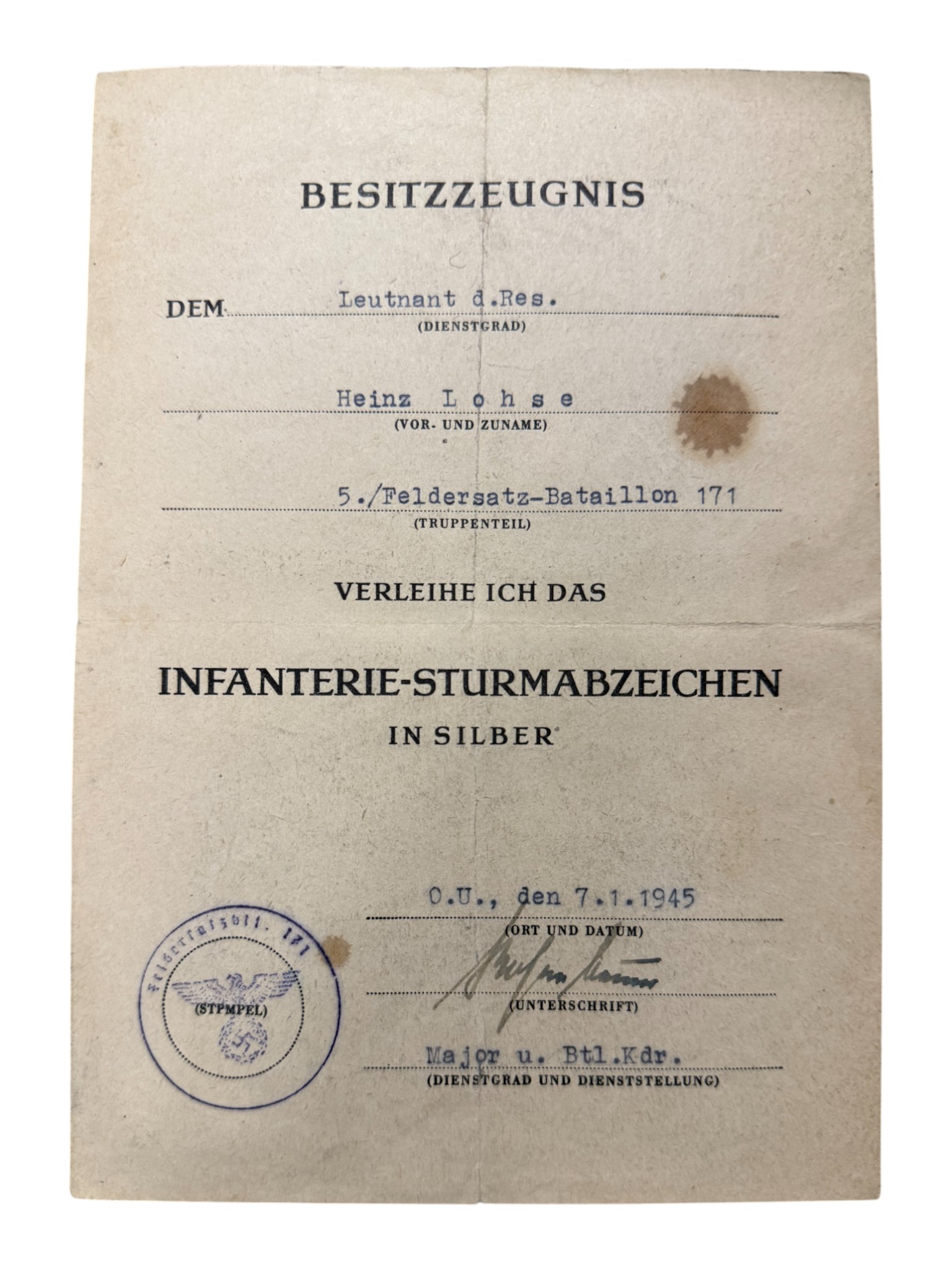 Soldbuch + award document Feldersatz bataillon 171