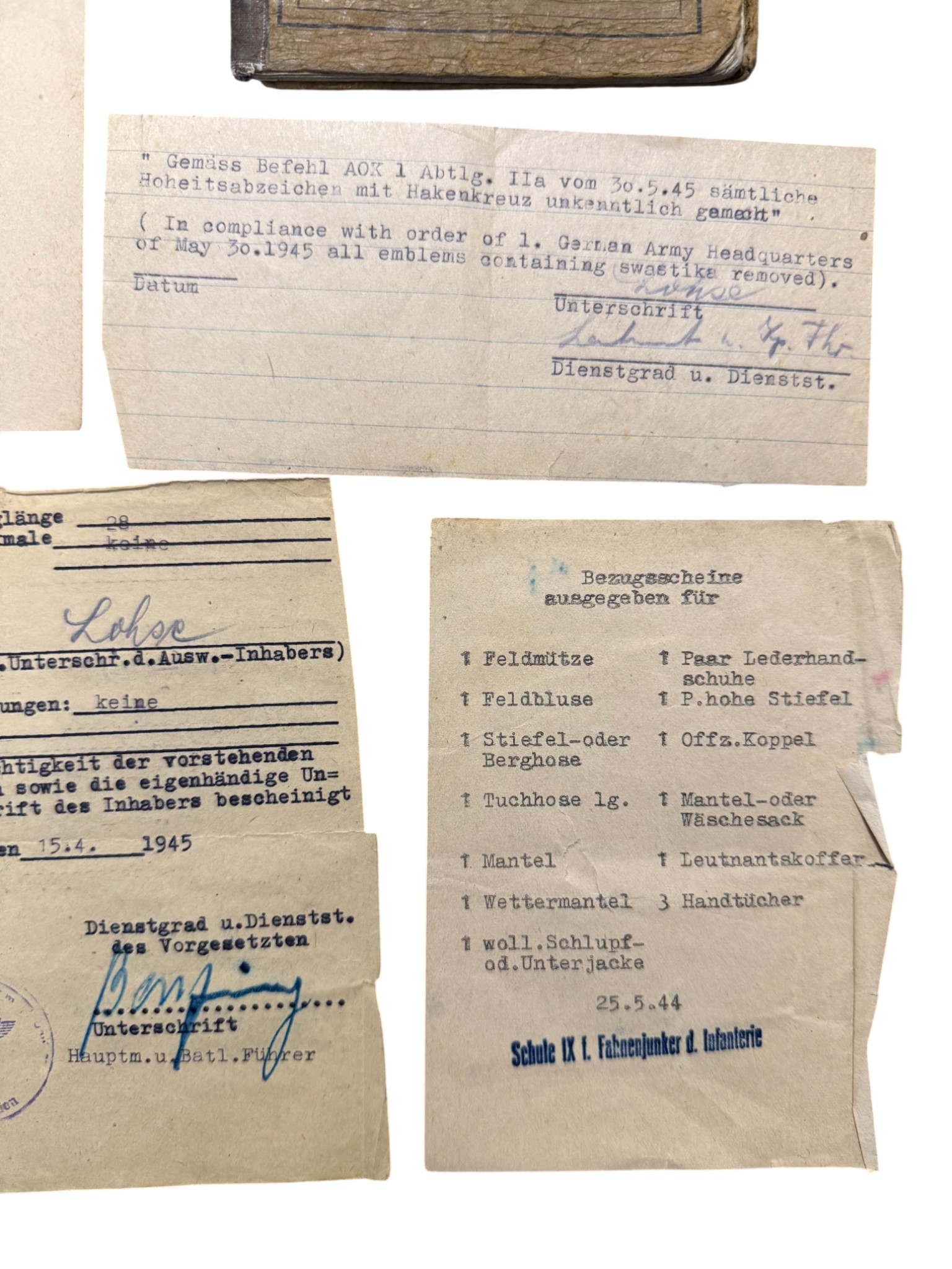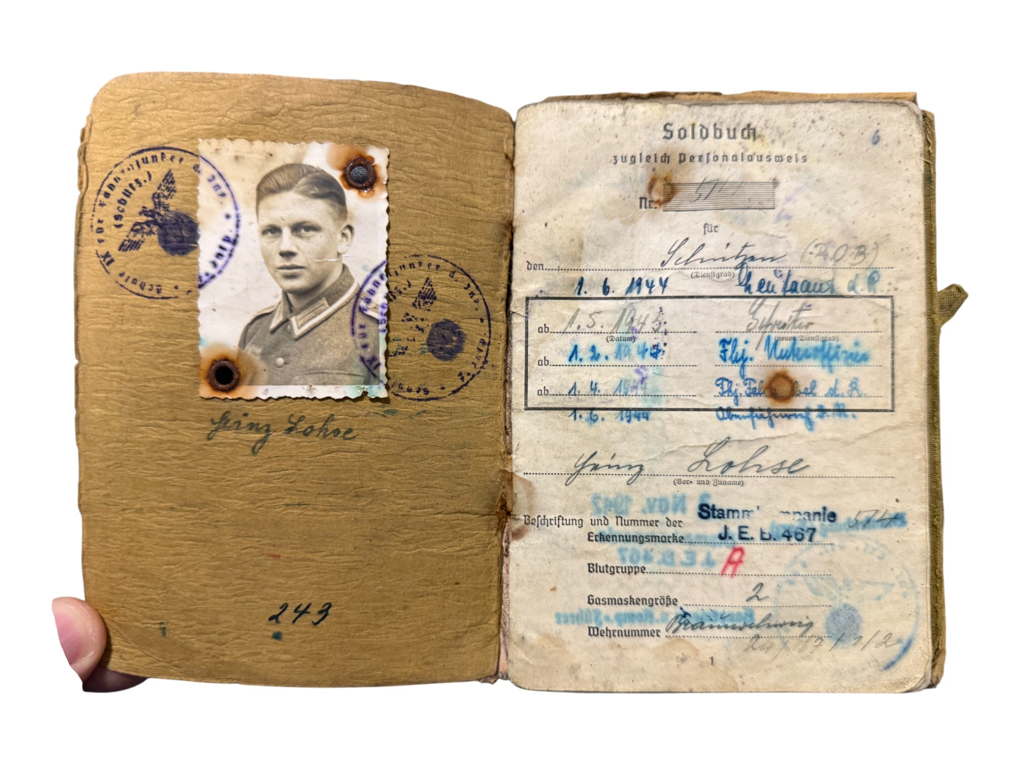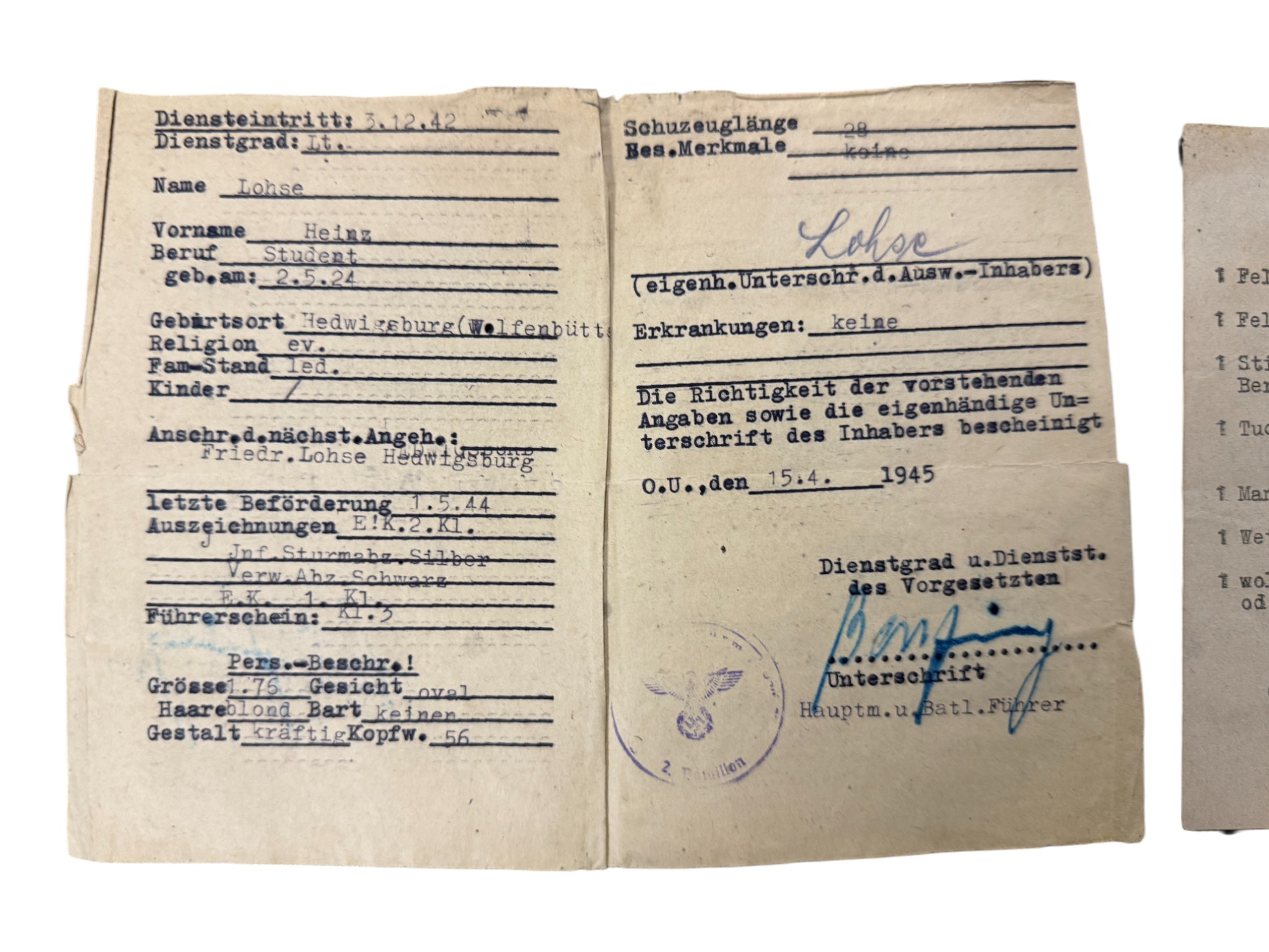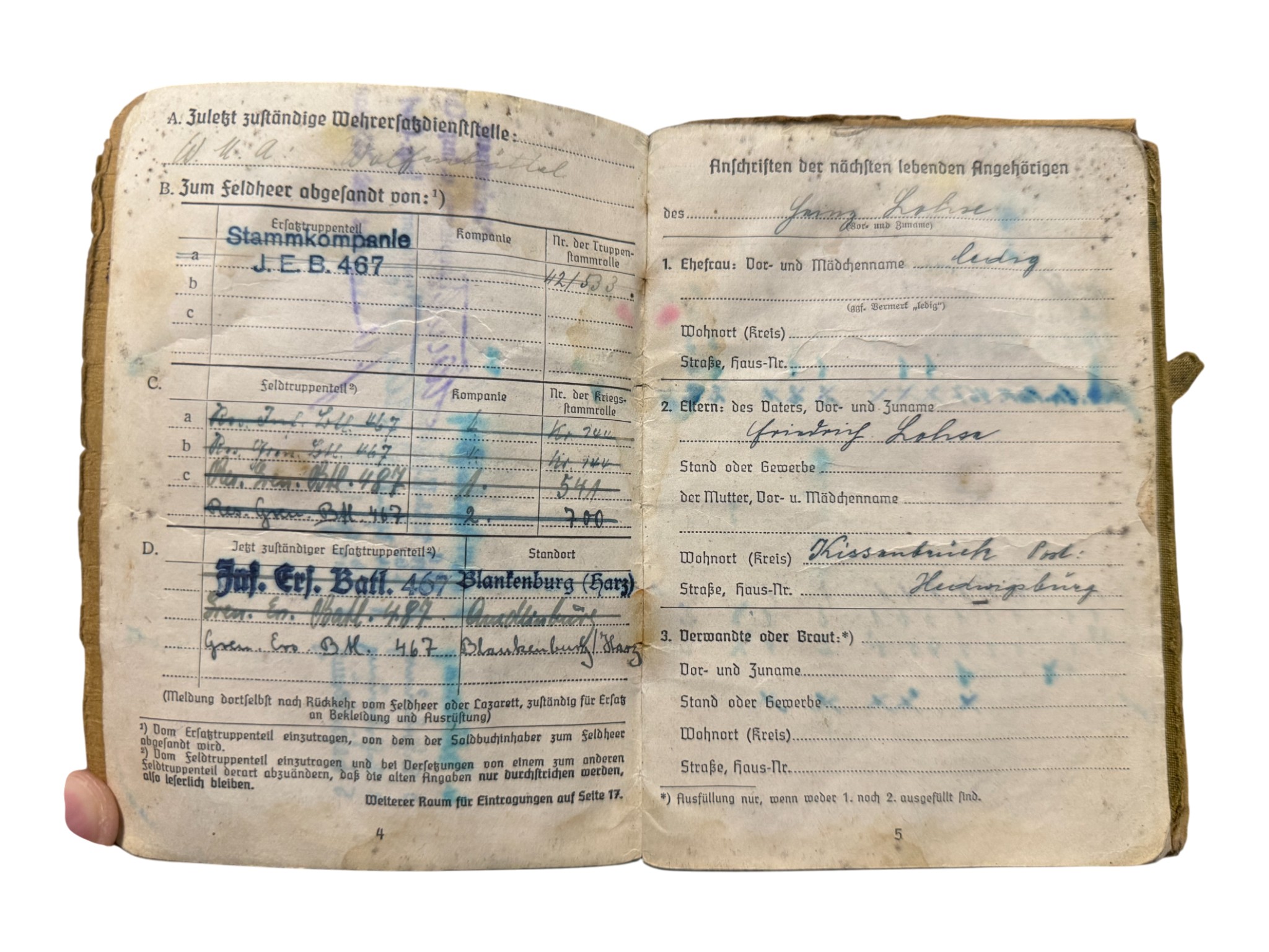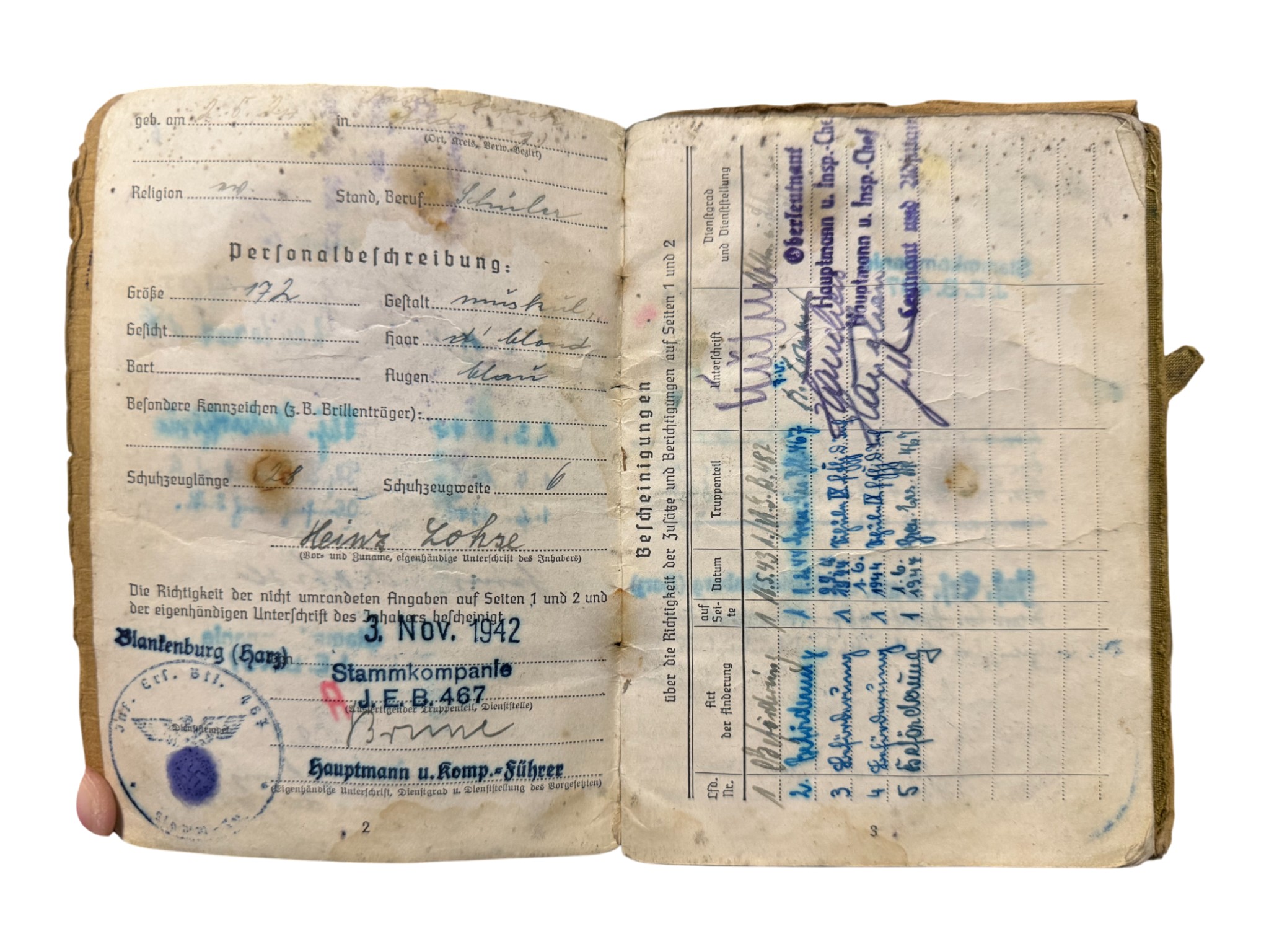 Soldbuch + award document Feldersatz bataillon 171, all belongs to one man