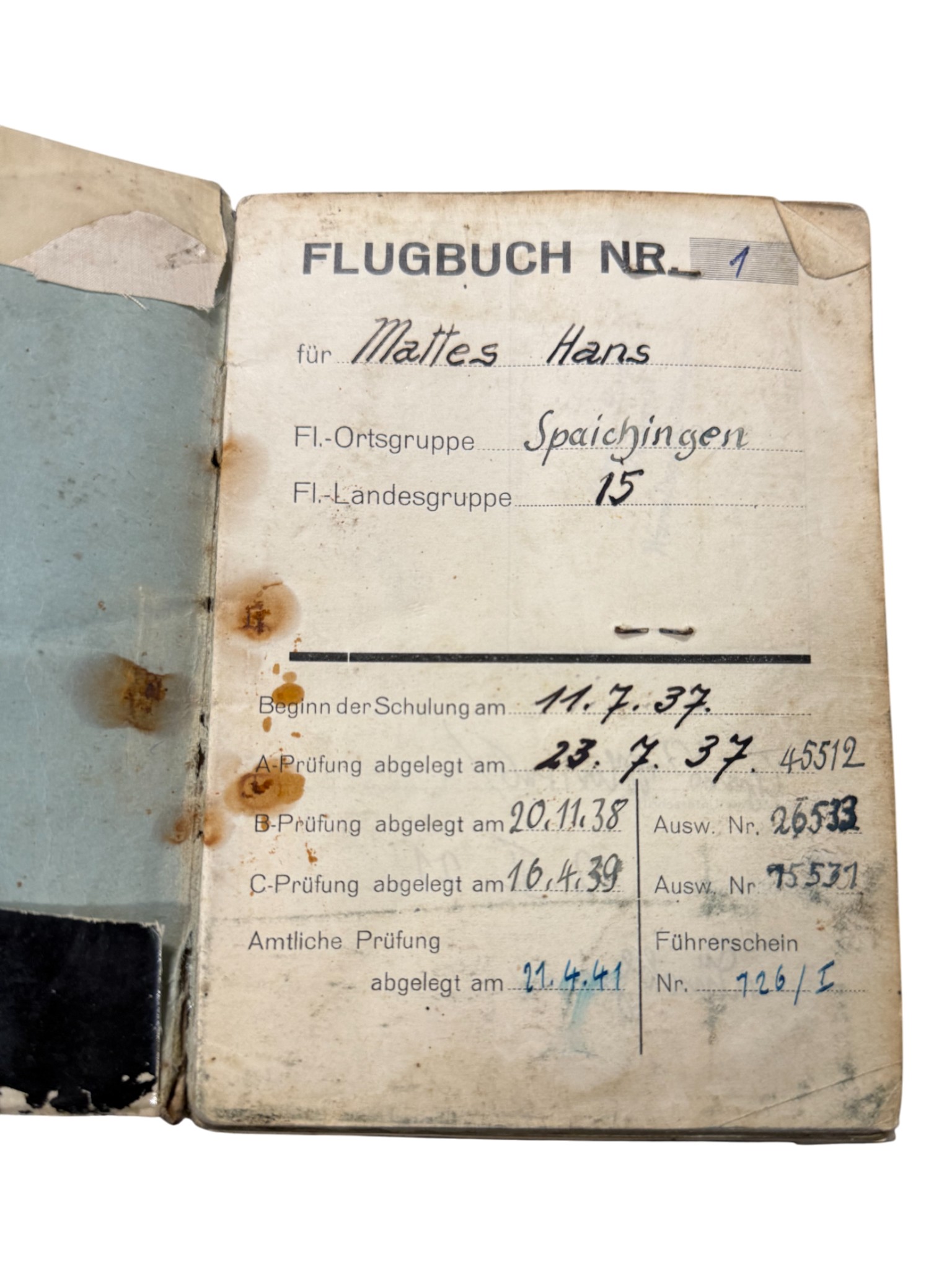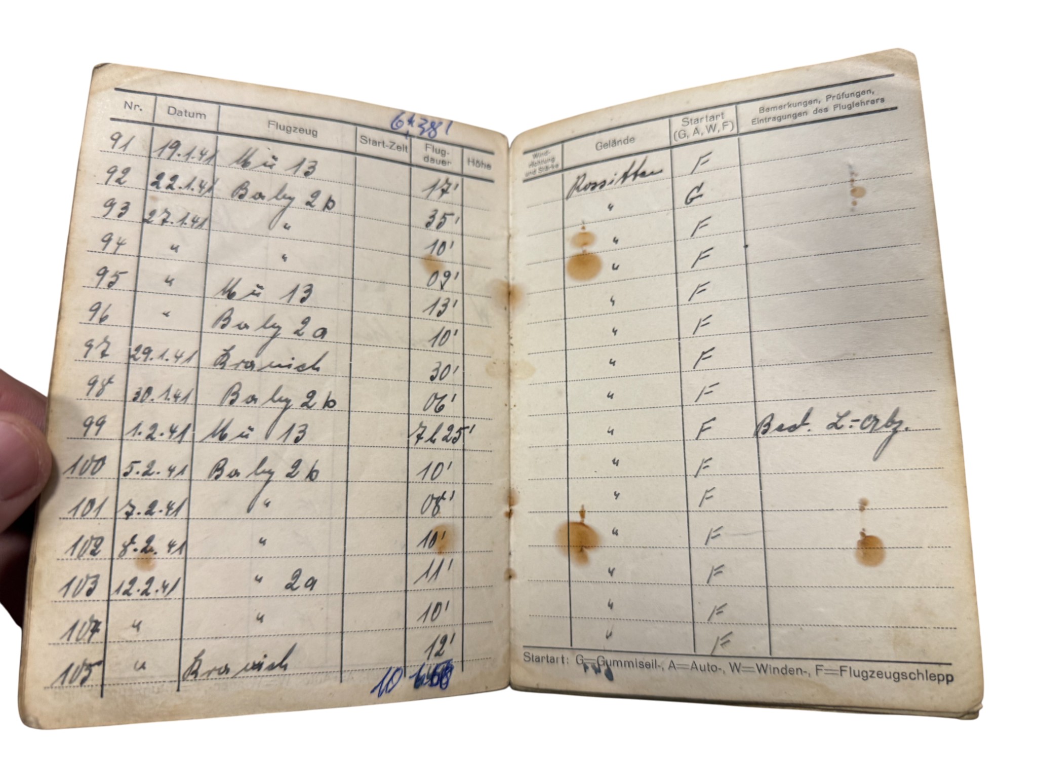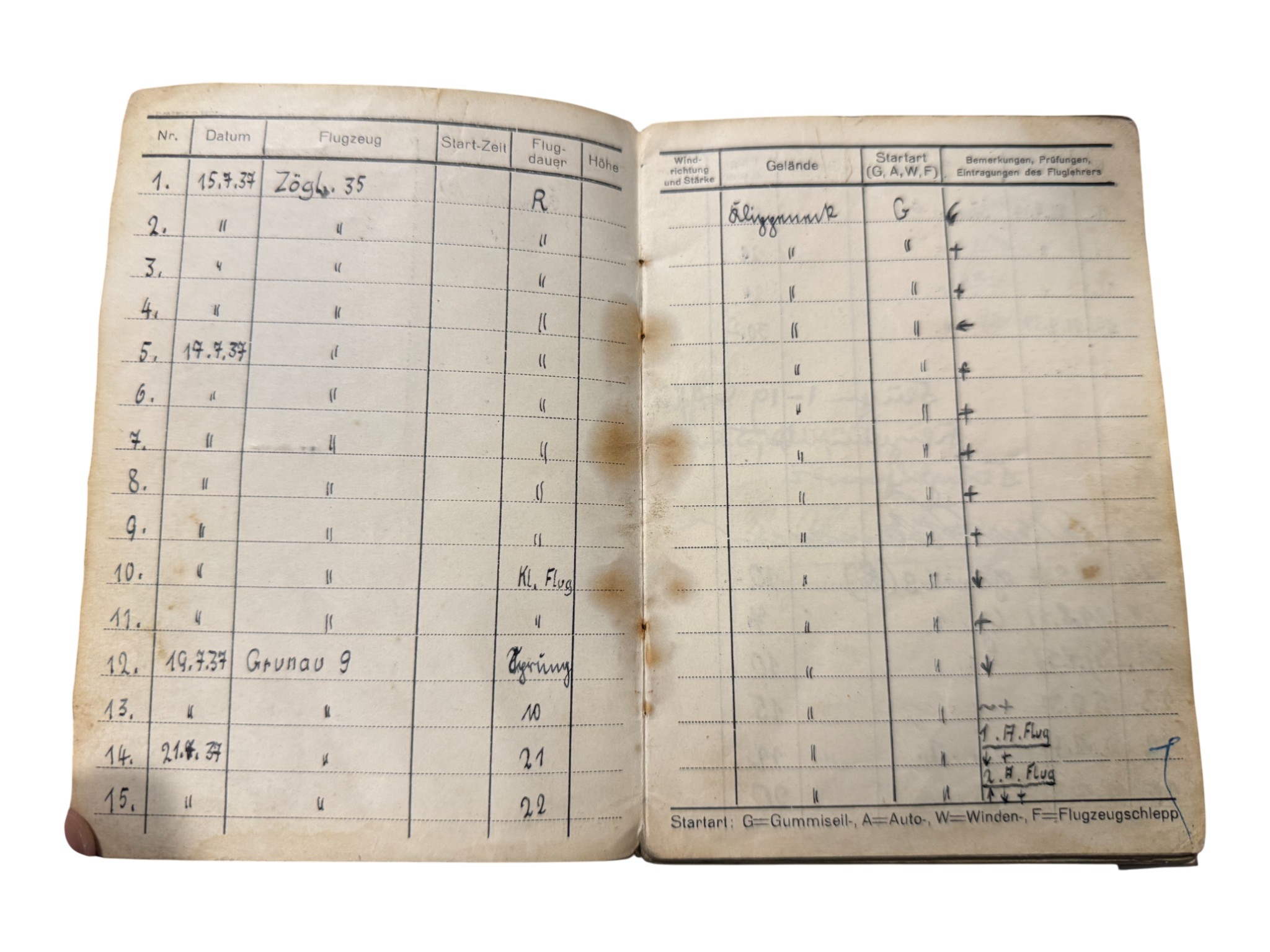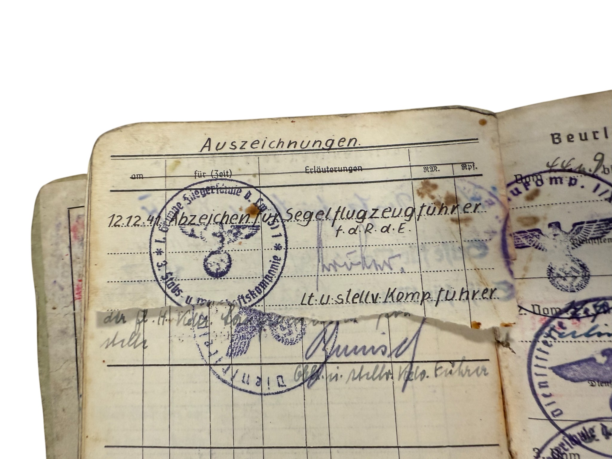 Soldbuch Luftwaffe Glider, flugbuch and HJ ausweis set. Awarded glider badge. In the soldbook there is only a small part of the page with awards.