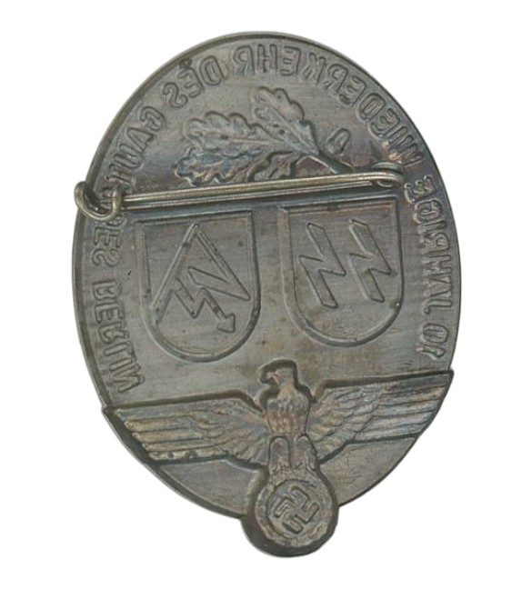 SS / SA 10 jährige Wiederkehr des Gautages Berlin, badge in good condition