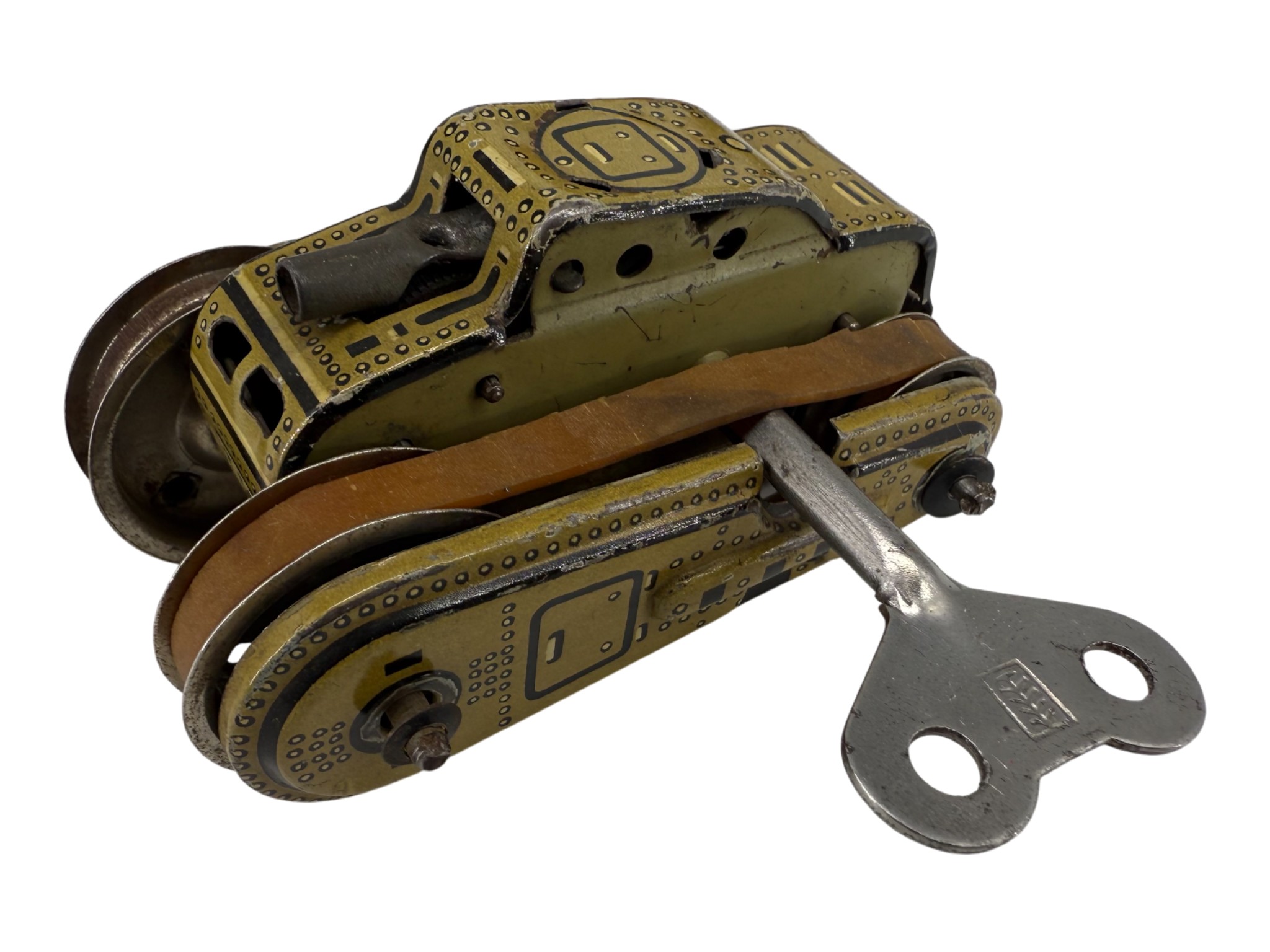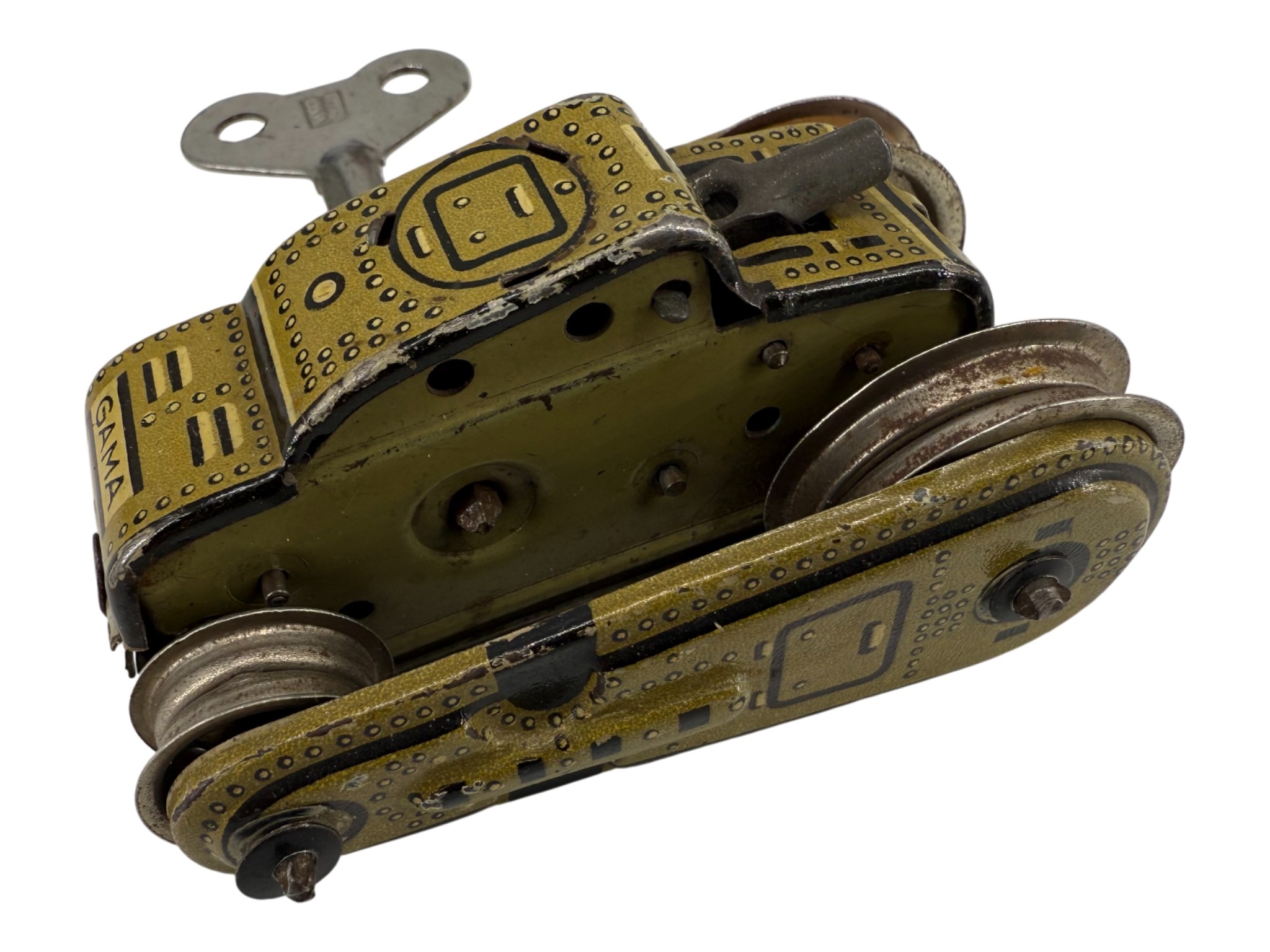 Vintage metal toys, guns “working”, tank mieesd rubber tracks.
